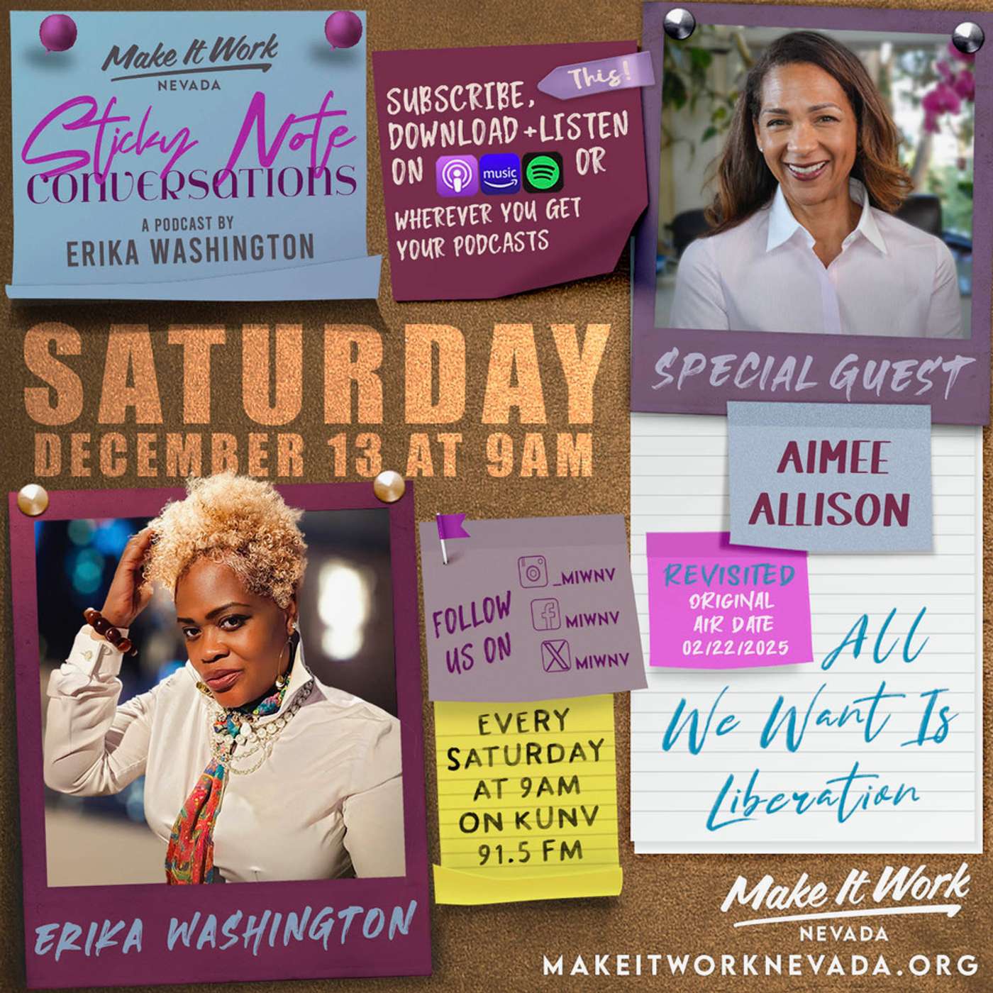 In this special replay episode of 'Sticky Note Conversations,' host Erika Washington revisits a poignant discussion with Aimee Allison, founder and president of She The People. Originally aired in March, the conversation delves into the emotional and societal challenges faced by black women in current times. Erika and Aimee explore themes of betrayal, the state of American democracy, the historic and ongoing struggles of black women, and the search for healing and liberation. They also touch on personal experiences, global perspectives, and the importance of self-care, mutual aid, and the possibility of becoming global citizens. Aimee shares her vision for striving towards a true democracy and the ongoing fight for justice, offering a fresh perspective as we approach a new year.