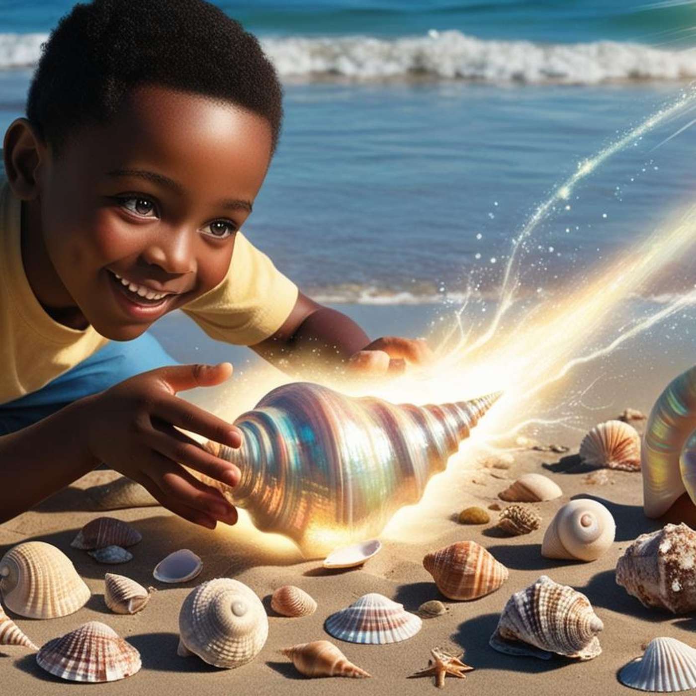 On a sunny day at the beach, Sam stumbles upon a beautiful shimmering shell buried in the sand. But this is no ordinary shell—it glows and hums with a magical secret! As Sam listens closely, the shell guides him on an unforgettable journey beneath the waves, where he meets mystical sea creatures and uncovers the power of listening, kindness, and adventure.