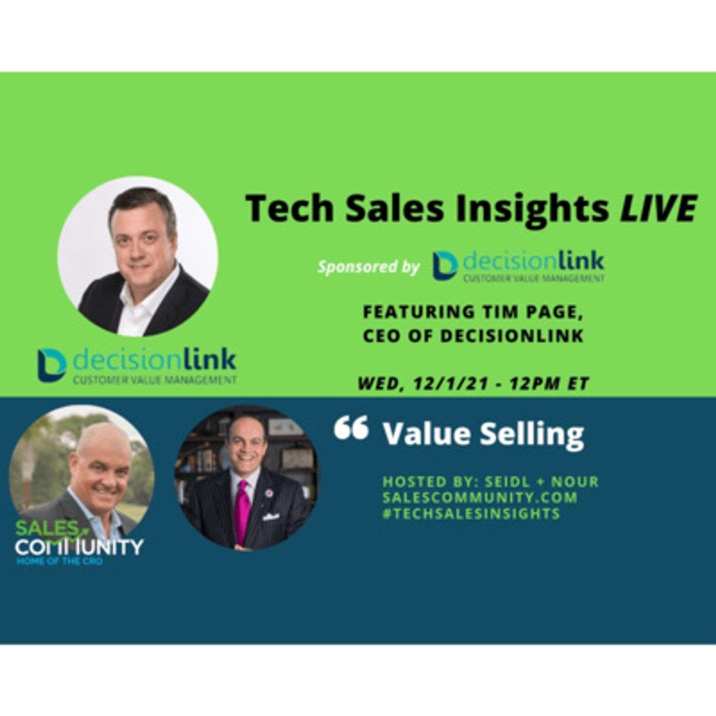 This episode is sponsored by DecisionLink, a Customer Value Management platform that automates business value conversations across the entire customer journey. DecisionLink uniquely delivers customer value management at scale through our self-service ValueCloud® platform. ValueCloud® turns customer value into enterprise-class strategic assets, that are easy to access and use by your team. Messaging, positioning and proving the economic value of your solutions, has never been faster, easier or more scalable than it is today.