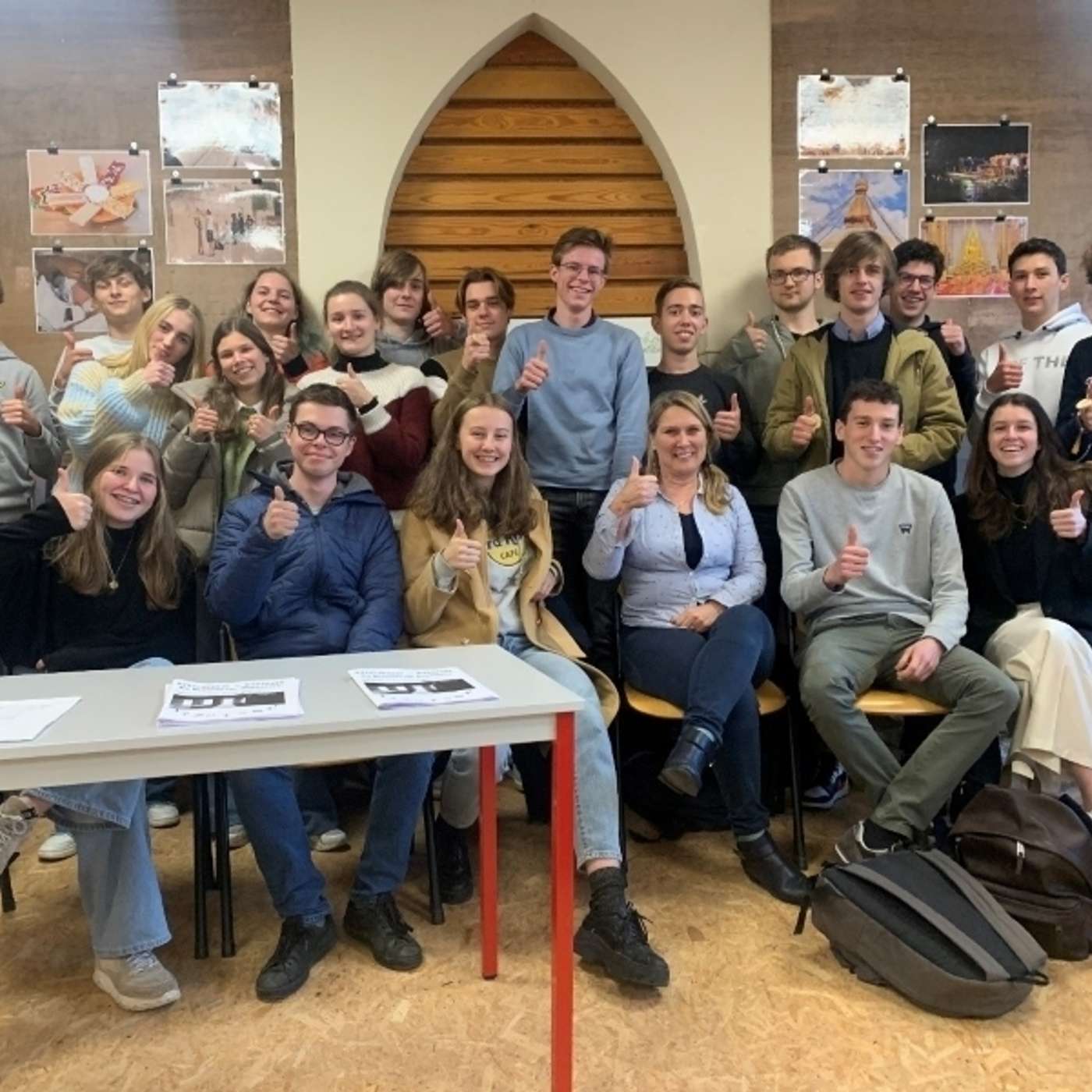 2. De inkijkende klas: zesdes wetenschappen wiskunde uit de Vrije Middelbare School Roeselare onder leiding van godsdienstleerkracht mevrouw Goedele Geeraert.