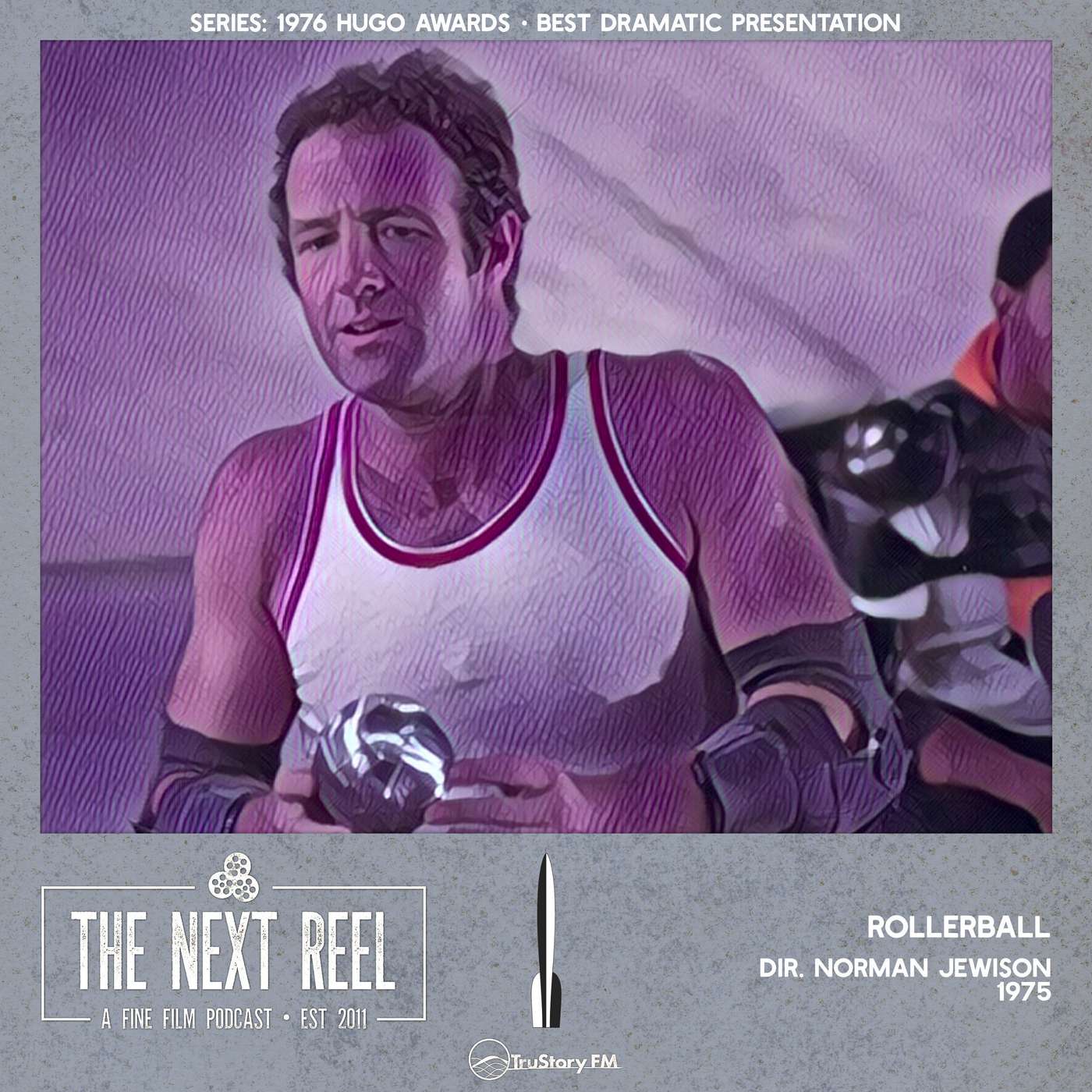 James Caan stars as Jonathan E., a legendary athlete in the brutal sport of Rollerball in Norman Jewison’s 1975 dystopian sci-fi thriller. With a screenplay by William Harrison based on his short story, Jewison intended the film as a critique of exploitative sports and their dehumanizing effects. However, audiences were enthralled by the violent future sport depicted. Rollerball entered a crowded field of 1970s dystopian sci-fi, alongside classics like A Clockwork Orange. Join us – Pete Wright and Andy Nelson – as we continue the 1976 Hugo Awards Best Dramatic Presentation Nominees series with a conversation about Rollerball.