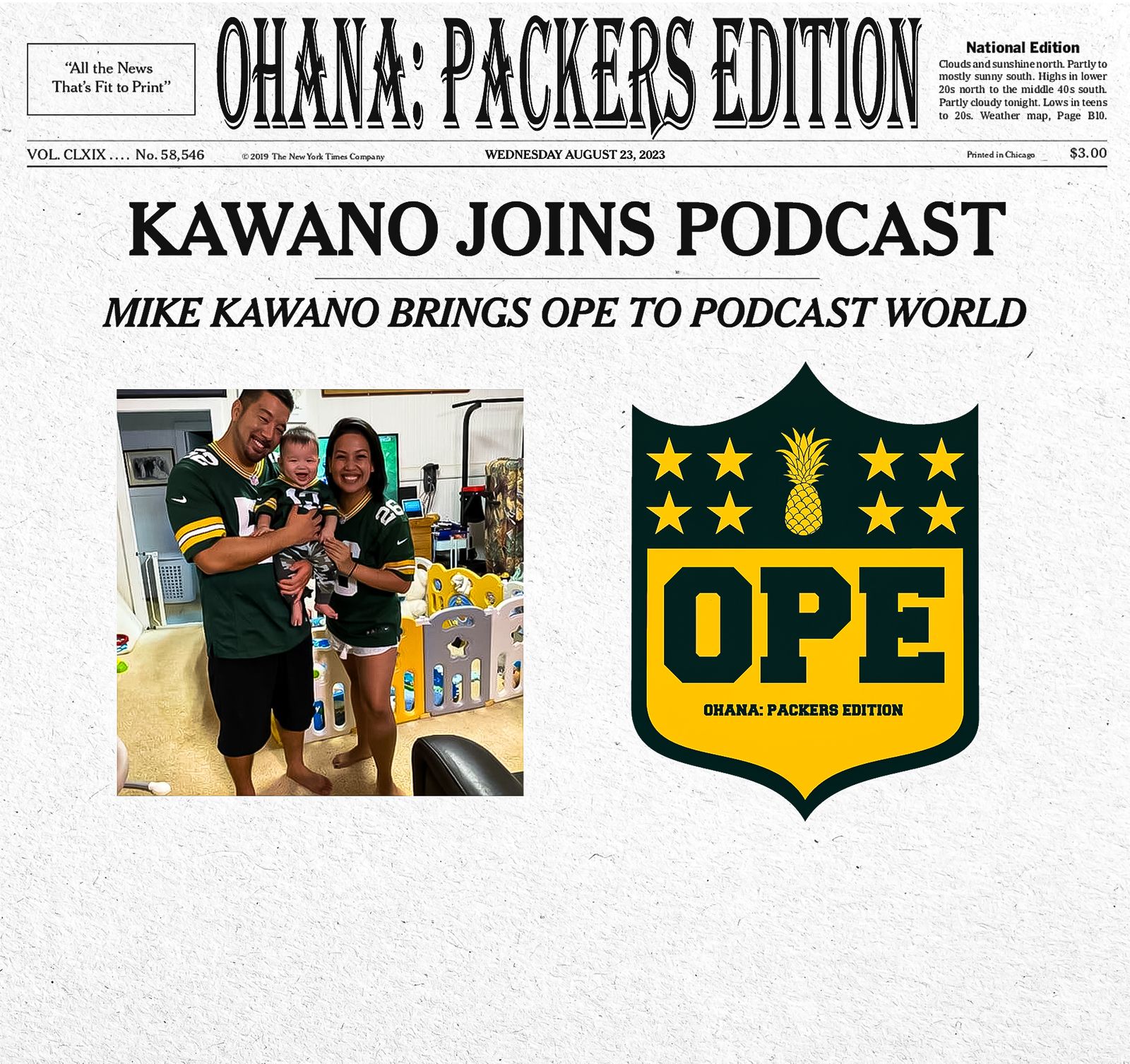 Aloha! This is the first episode of the Ohana: Packers Edition Podcast! With Nick stepping away, Mike Kawano has stepped up to take his place. We talk about the 2nd preseason game against the Patriots and talk about potential roster decisions.