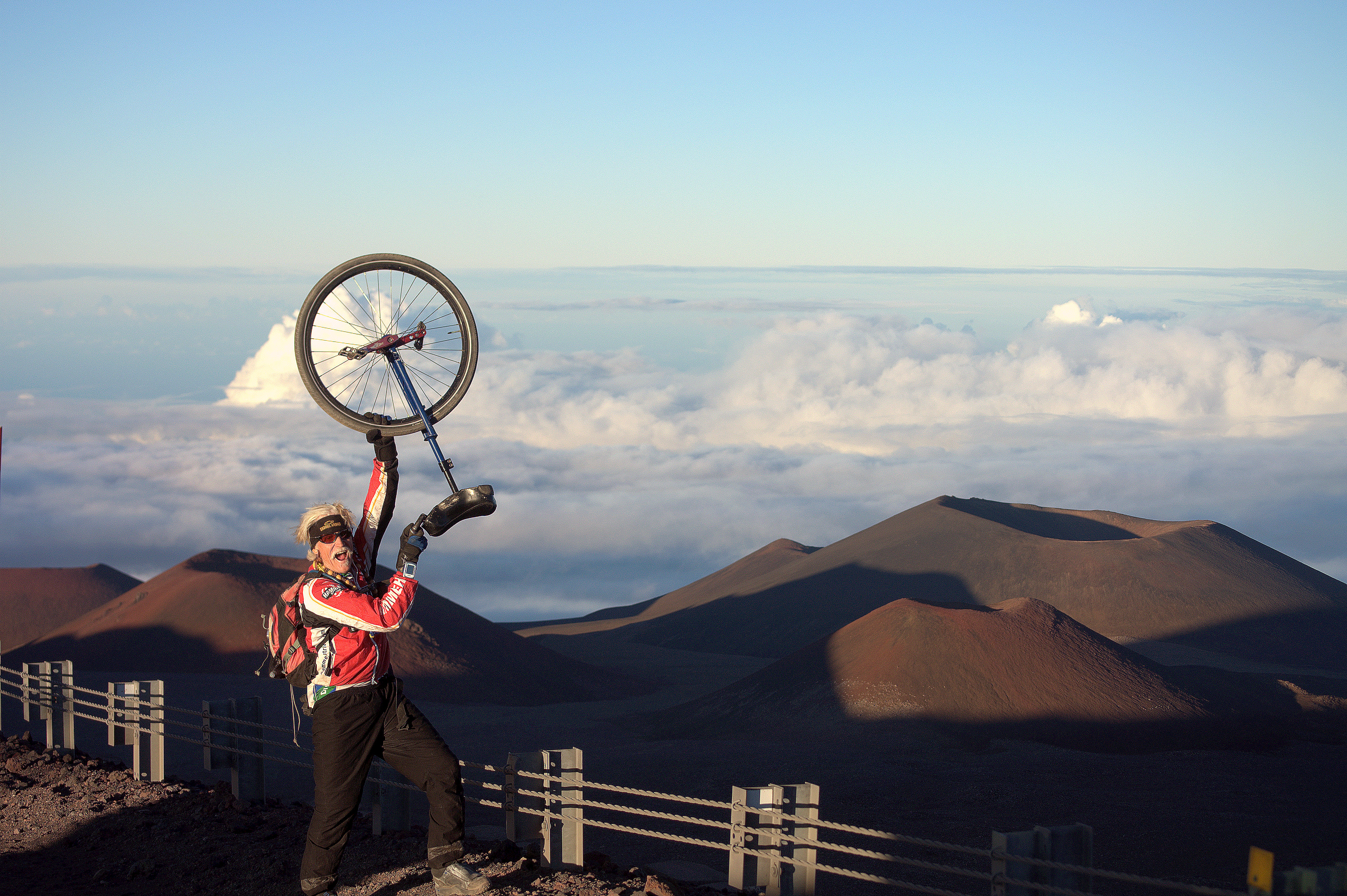 This week we have world record owner Mike Tiernery. Mike Tiernery has been riding unicycles in epic rides in Colorado and elsewhere. 100 mile Copper Triangle (4 passes), the 48-mile Iron Horse Classic (Durango to Silverton over Coal Bank and Molas passes), or the world record Mauna Kea 14K, Mike does it all on a unicycle.