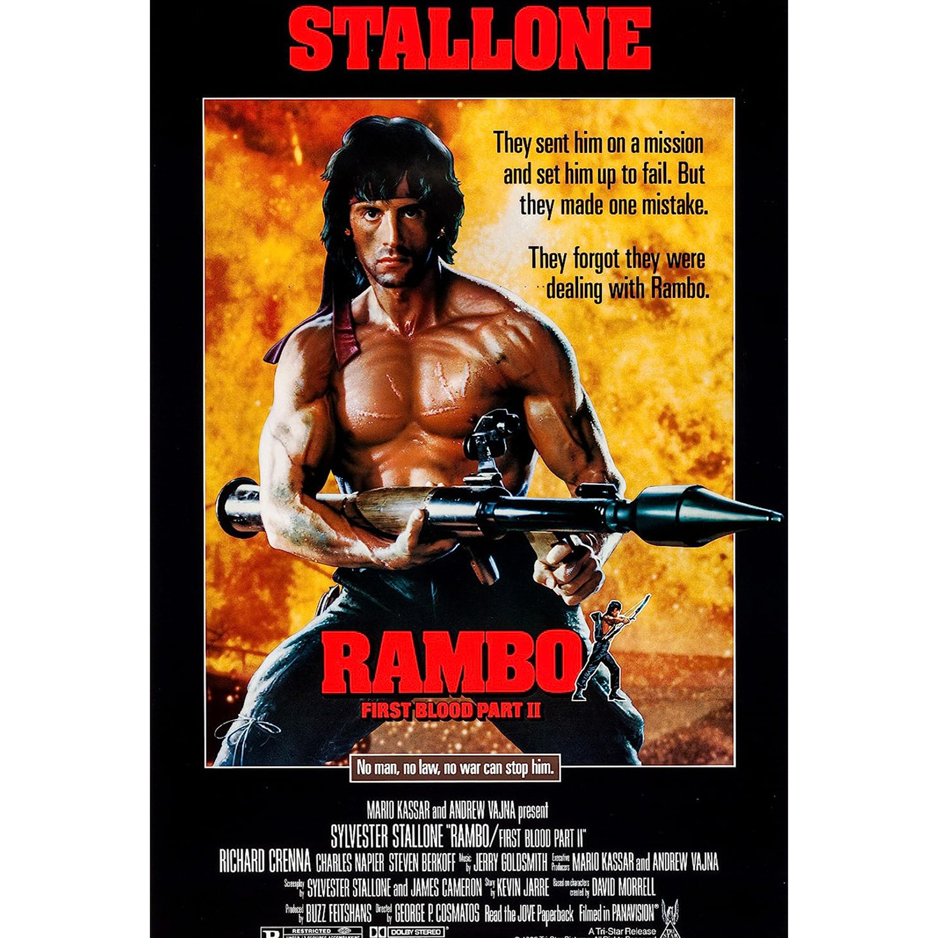 Our Rambothon continues with RAMBO. COLON. FIRST BLOOD PART TWO! What kind of naming convention is this? Does anyone care? Rambo returns to Vietnam to do recon (?) to find missing POWs and definitely doesn't fight his way out of the country. Fake Russians and fake Vietnamese soldiers get murdered en masse. Did Stallone speak his last intelligible words in this film? Check us out and tune in next week for our continuing EPIC event... RAMBOTHON!!!