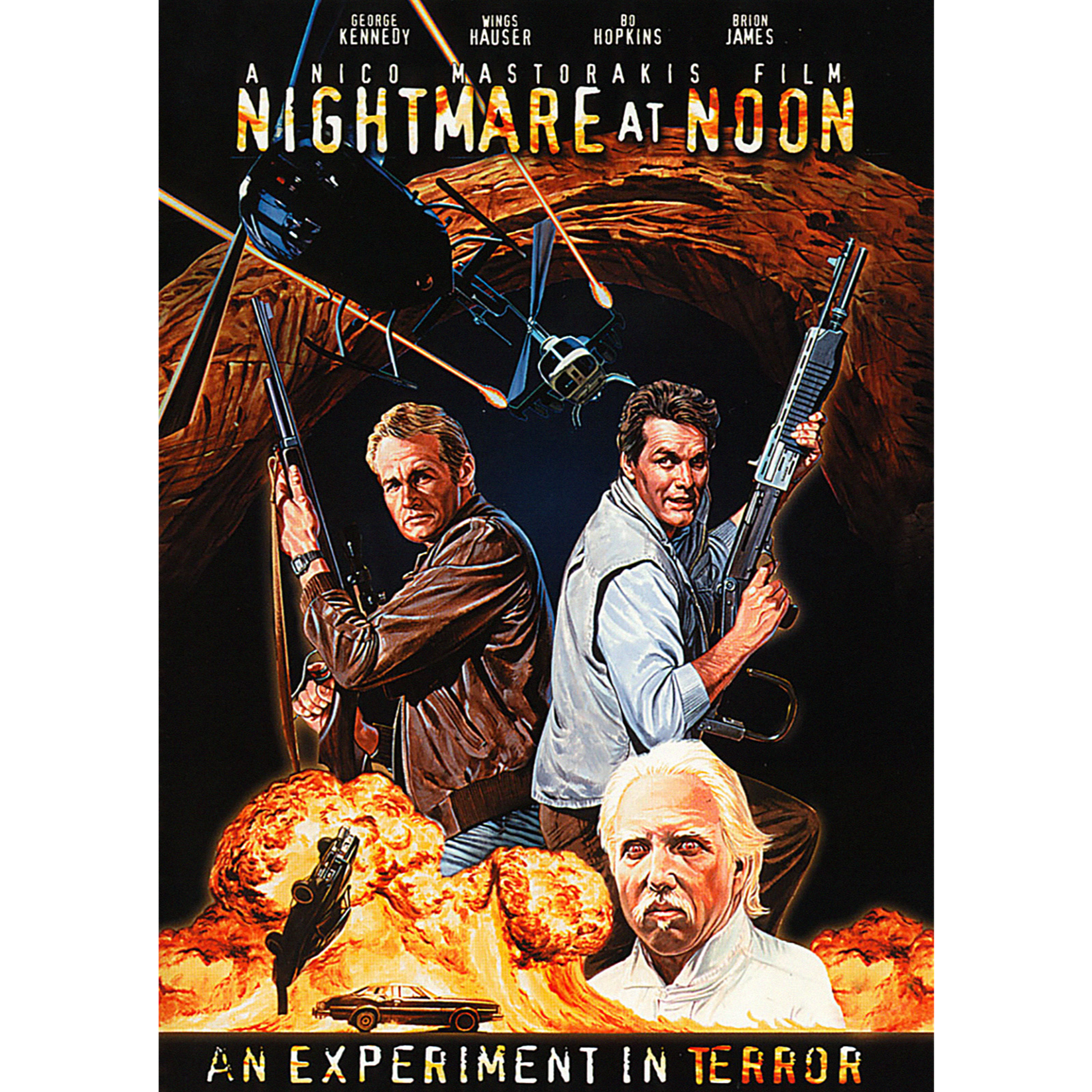 Shady government organizations. Mysterious drifters. Chemically-induced zombies. Cole Hauser's dad. All of these things meet in this week's episode, NIGHTMARE AT NOON, directed by schlock master Nico Mastorakis and starring Bo Hopkins, Brion James, Wings Hauser and George Kennedy. What happens when a zombie apocalypse grips a small Utah town? Well, awesome stunts, flaming cars and exploding people, of course. Join us as we dive into this schlock classic involving, perhaps. the most well coordinated aerial stunts we have had to date!