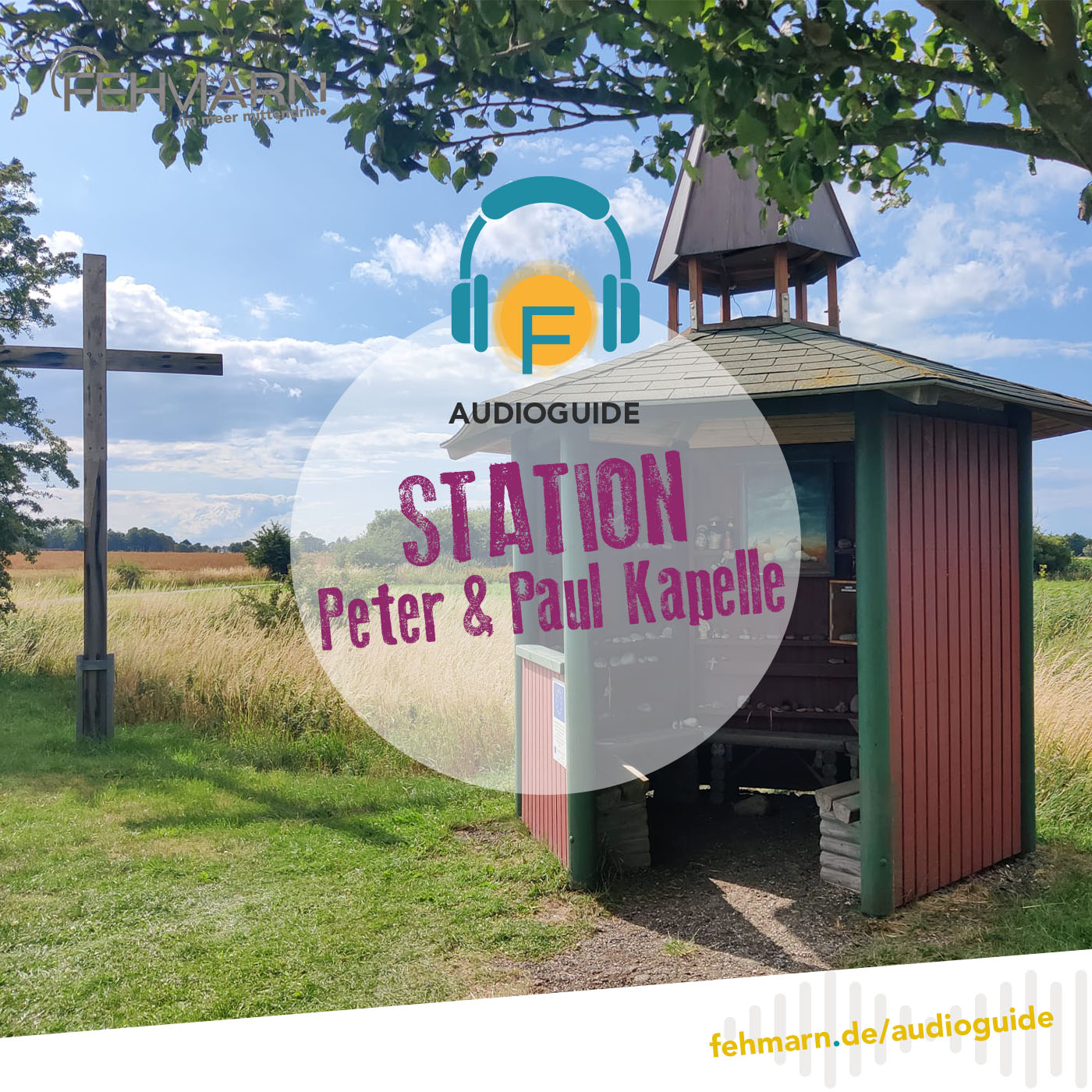 Hier stand einst die Peter und Paul Kapelle, direkt am Strand, als vor dem Deichbau noch das Meer hier entlang rauschte. Am 29. Juni 1644 am Peter- und Paulstag wurde sie jedoch durch Kanonenfeuer bei der verheerenden Schweden-Landung zerstört. Verschont bleibt nur der Opferstock, der heute in der St. Jürgen Kapelle in Burg steht. Heute erinnert diese offene Schutzhütte aus Holz mit einem Glockentürmchen an die damalige Kapelle.