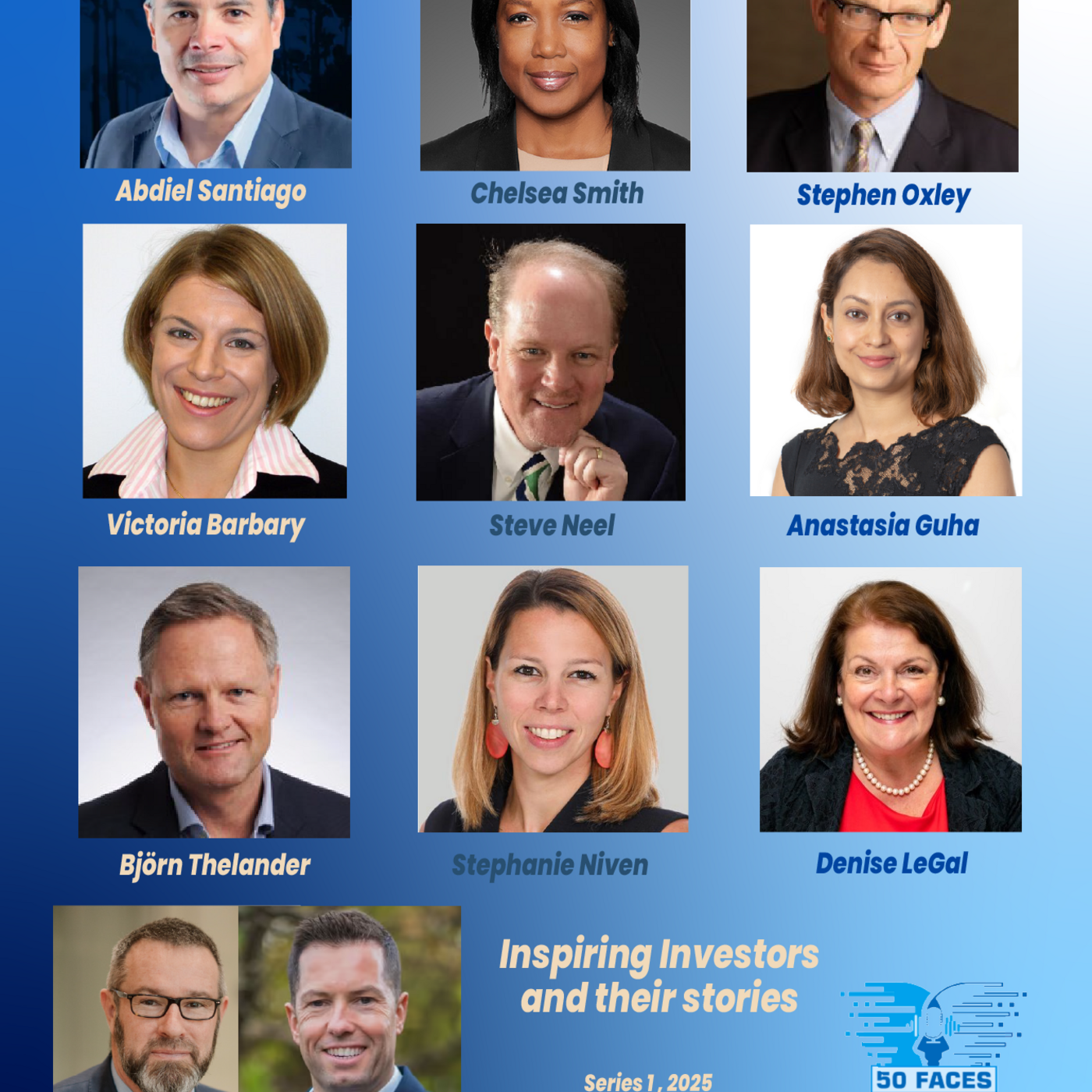 The guests of Series 1 are Chelsea Smith of Bernstein Private Wealth, Anastasia Guha of Redington, Denise Le Gal of Brightworth, Abdiel Santiago of the Panama Sovereign Wealth Fund, Bjorn Thelander (formerly of the Dyson Family Office), Stephanie Niven of Ninety One, Rob Gardner and Eoin Murray of Rebalance Earth and Steve Neel of New Mexico Educational Retirement Board and Stephen Oxley of OXC.