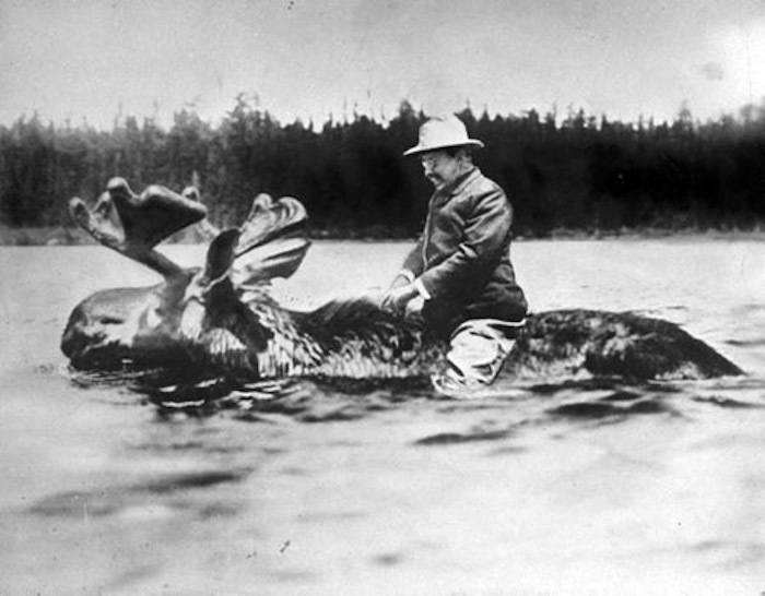 Theodore Roosevelt hatte ein schier unglaubliches Leben mit einer Dichte an Ereignissen die ihresgleichen sucht. Außerdem hinterließ er eine Spur aus Fotografien, unter anderem eine Aufnahme in der er auf einem Elchbullen durch einen See schwimmt...