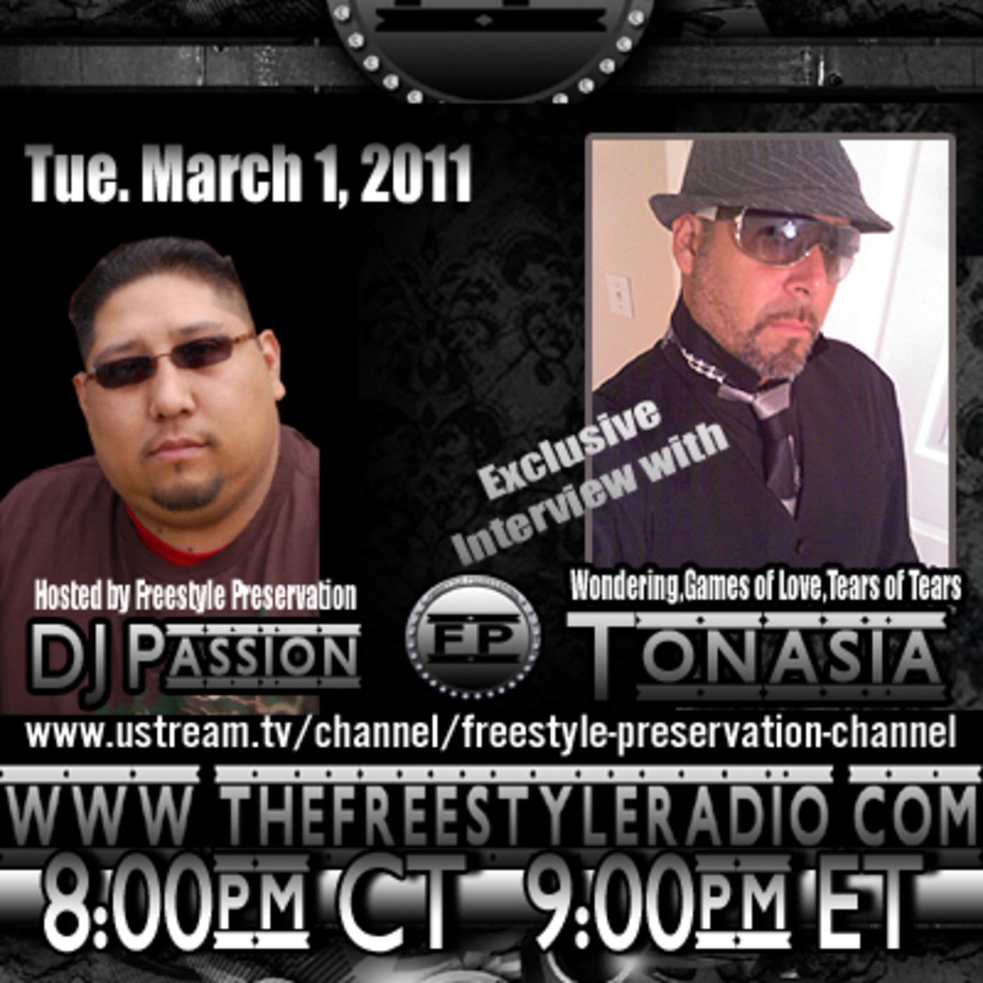 Freestyle Singer Tonasia Live interview with DJ Passion Talking about what he's been up too what songs are coming up for 2011 and Explains how he feels about The Radio Web and on Air Radio Plays. all on www.thefreestyleradio.com