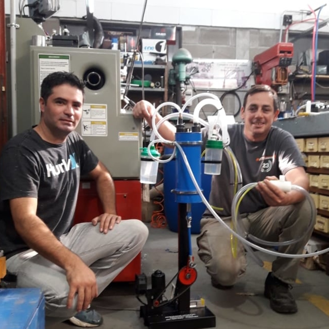 Abelardo Oviedo (41) y Mauro Provenziani (35) desarrollaron cicladores como alternativa de emergencia por si faltan respiradores. El proyecto no tiene fines de lucro. Oviedo explicó que se trata de “una fuente que alimenta a un motor de limpiaparabrisas de un vehículo, transmitido por un piñón, corona y cadena de moto de 110 cilindradas, que transmite el movimiento a un cilindro de PVC, que es un caño, con tapas y válvulas