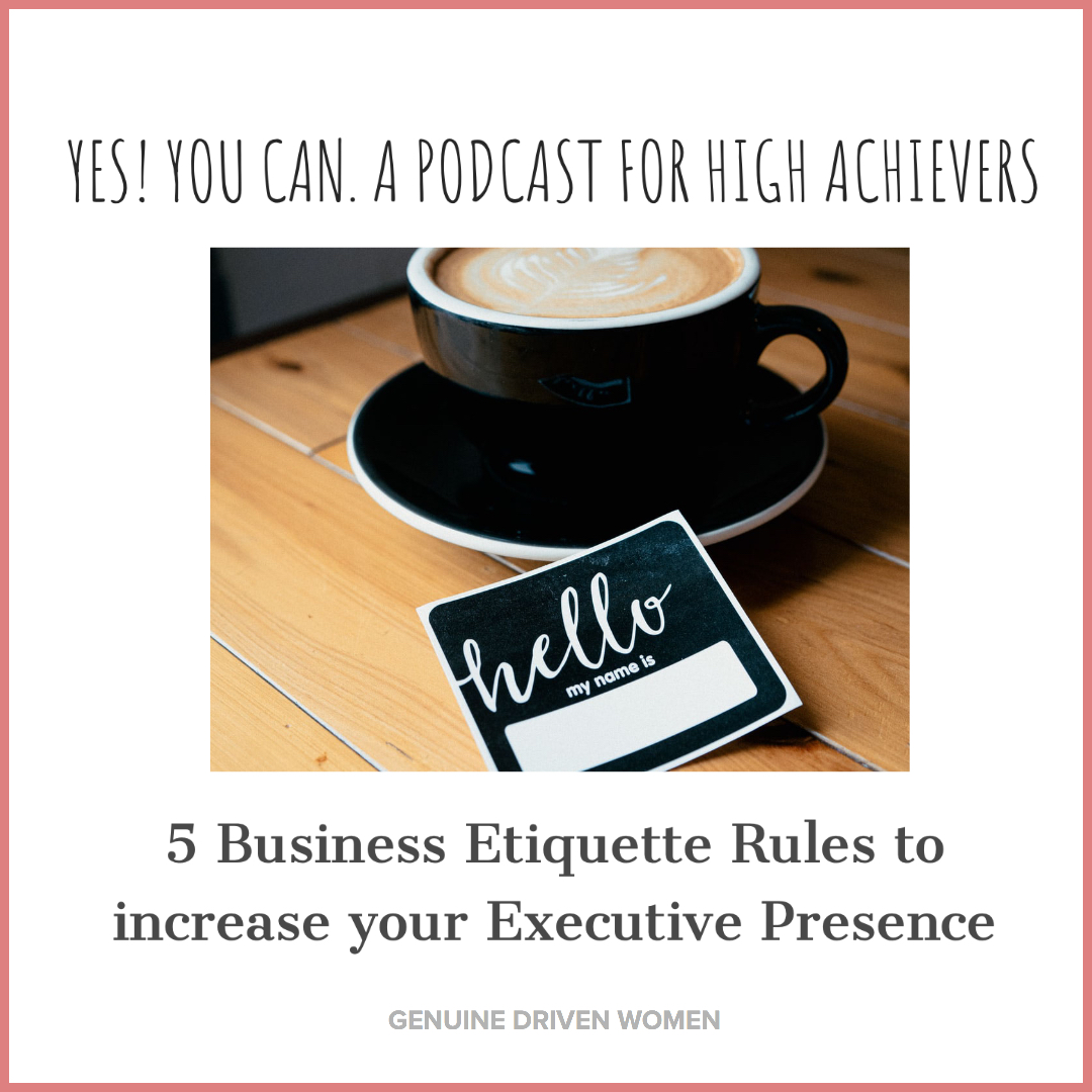 A person with Executive Presence will have a certain level of class, that bit of something special will radiate from them. The 5 etiquette tips I discuss in this episode will allow you to shine just a little brighter. People will remember you because of how you make them feel, and in turn, you will make genuine connections that will drive collaboration and demonstrate increased leadership potential.