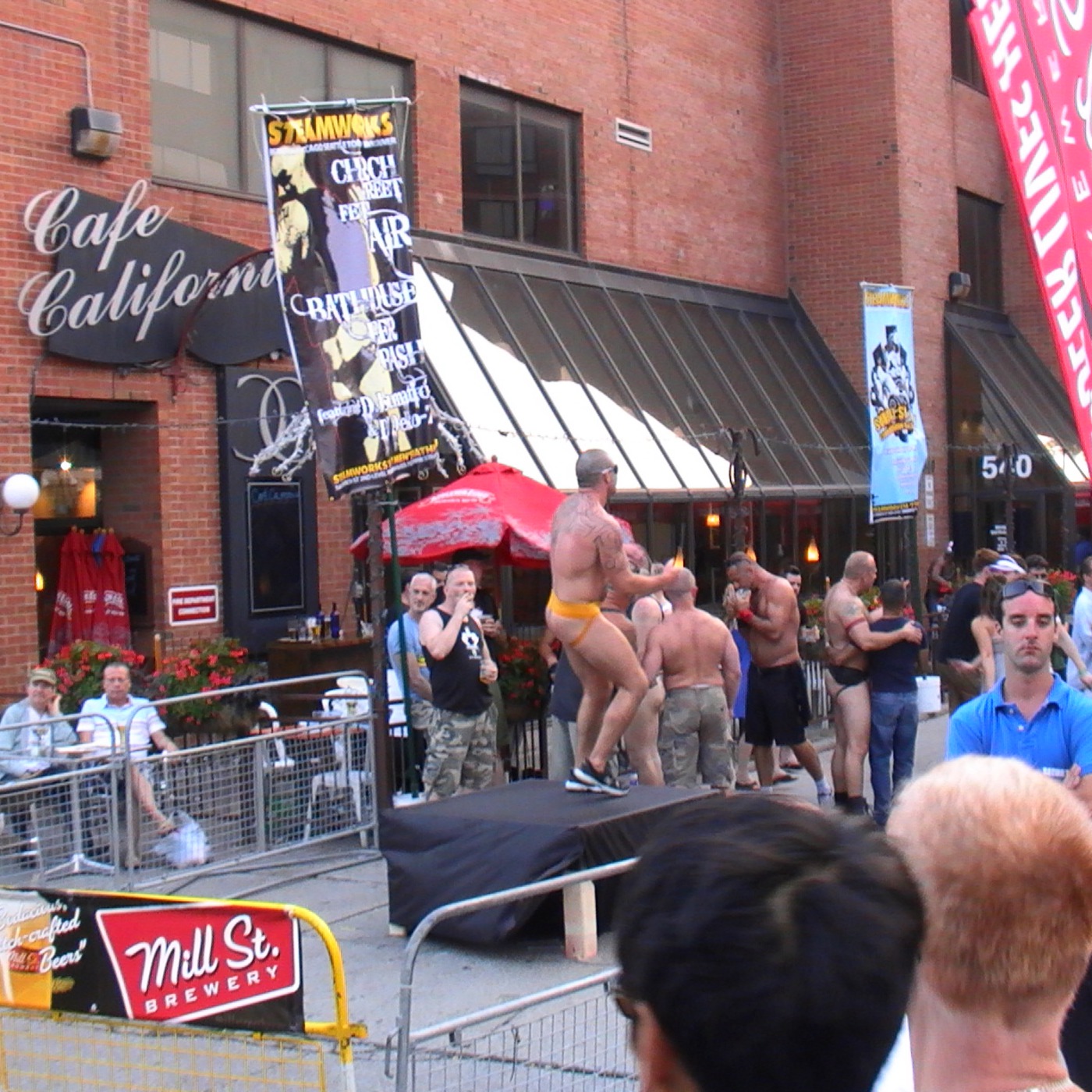 This brave jockstrap boi was one of the main attractions at the church street fetish fair watch him dance and do the helicopter in front of a huge crowd on church street