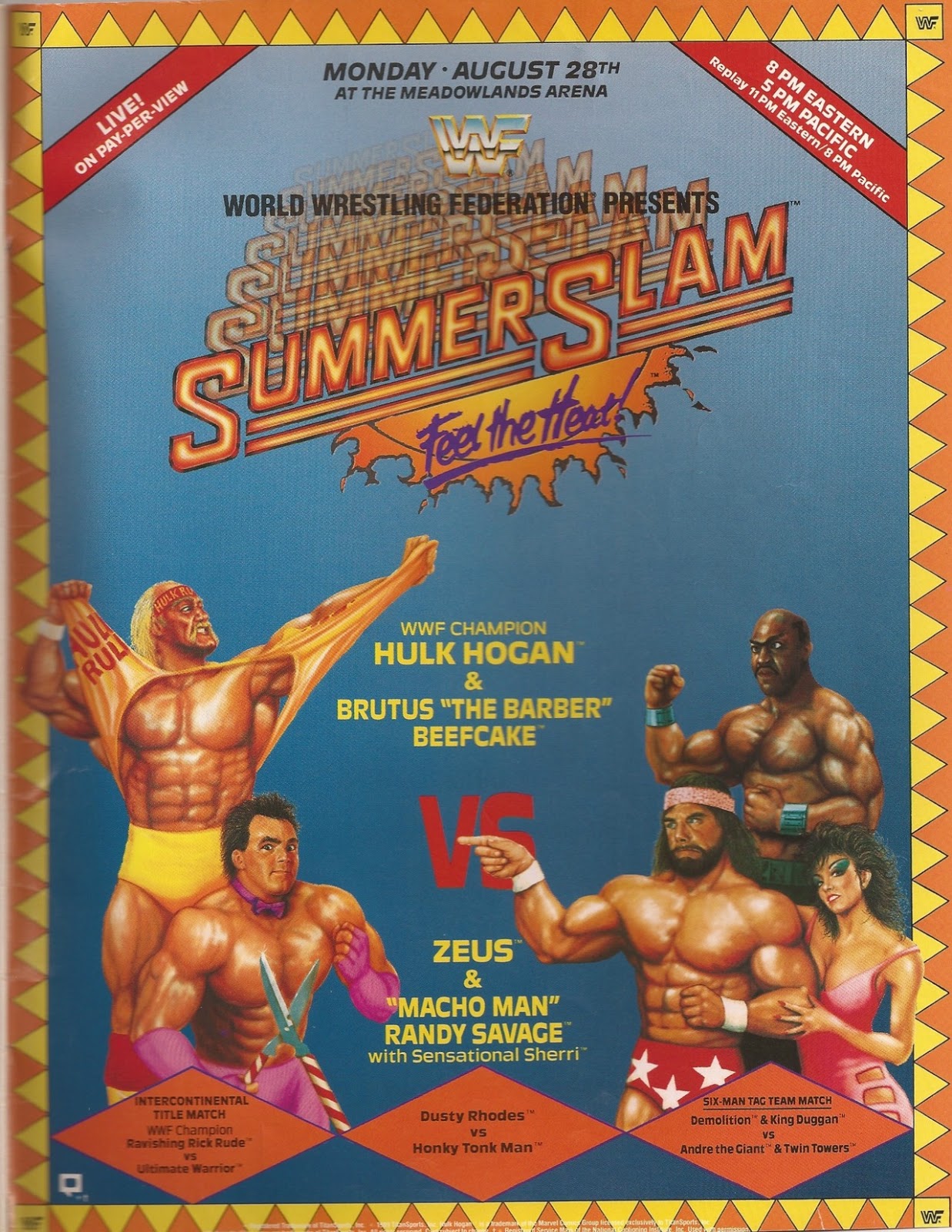 It was a hot night in NJ back in 1989 as WWE presented the 2nd summerslam! With a main event of Hulk Hogan and Brutus beffcake vs Zeus and Macho Man and a great Warrrior-Rude match this event is classic old scholl WFF! Listen to our review PLUS our CM Punk tohughts!