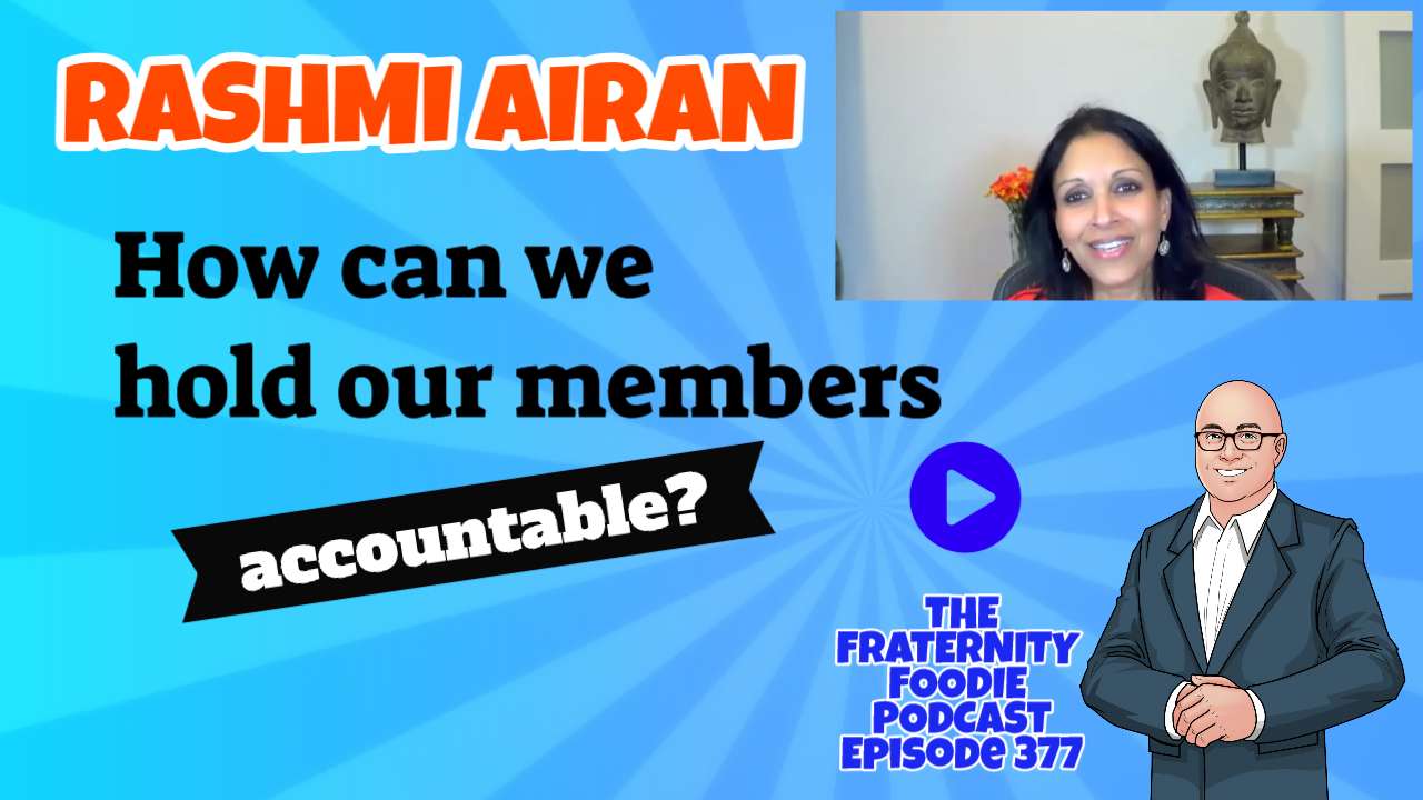 Rashmi Airan is a keynote speaker and consultant determined to create organizational cultures focused on integrity, authenticity, and accountability. Rashmi instills audiences with the energy and understanding to create the safe space that will allow us to engage in courageous conversations in all aspects of our lives. She will create a strategy for any organization to address reputational risk issues as they arise. Rashmi utilizes her own experiences to share her human performance methodology, technique and mindset that will catalyze leadership, growth and stability in all organizations. In episode 377 of the Fraternity Foodie Podcast, we find out why Rashmi chose the University of North Carolina at Chapel Hill, why she decided to join Chi Omega sorority, why she didn't listen to her inner voice screaming "ask questions" about a local real-estate developer, how she viewed all of her strong relationships after serving a six-month sentence to Federal prison for bank fraud with a judgement against her future earnings, how she doesn't let shame and remorse define who she is today, how we can hold our members accountable, how we can start vulnerable conversations in our fraternity or sorority, how she's able to overcome the adversity in her life, and how a commitment to empathy can help us end problems such as hazing. Enjoy!