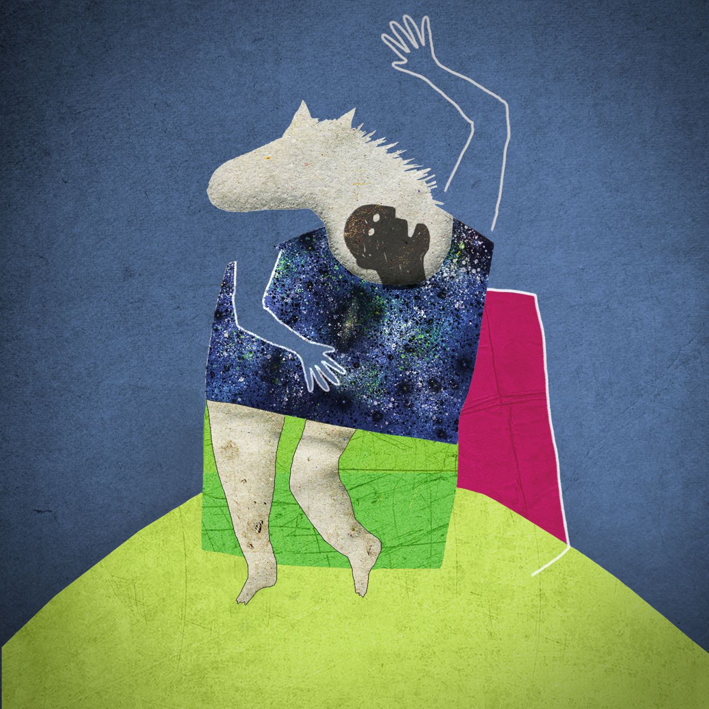 Aingeru naiz, Aingeru Arruabarrena. Niretzat dantzan egitea, deabruari tu egitea bezalakoxea da.Tekno festa batean izan nintzen atzo eta harrezkero etxetik falta naiz. Nire bila dabiltza etxeko guztiak. Gurasoak etxean eta Amets arreba, amona Carmen eta Jon, nire lagun mina hara eta hona. Ez dute nire berririk eta kezkatuta daude. Nire bila jarraitzeko asmoa ote dute?"Zaldi urdina" podcasta Igor Elortza eta Unai Iturriagak idatziko soinu-fikzioa da.