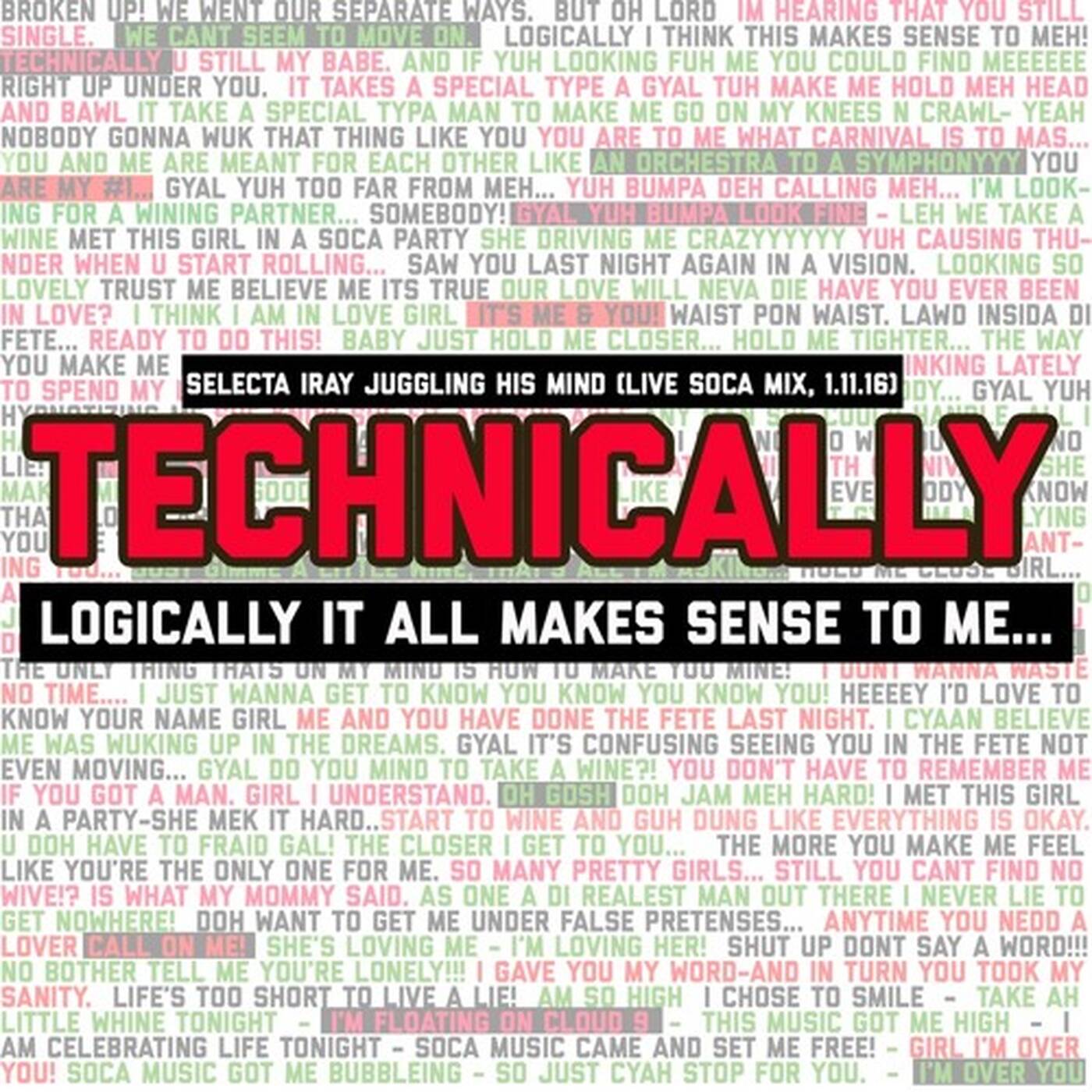 Now I finally did the first step, motivated by one of the most brilliant Soca Love-Songs I heard in the past years, the yet unreleased Single "Technically" by Farmer Nappy and Destra. A song telling a story that most people could know from their own personal experience after a finished relationship that somehow should not and doesnt want to be really finished.... because "technically... logically" it could still work somehow until you move on.