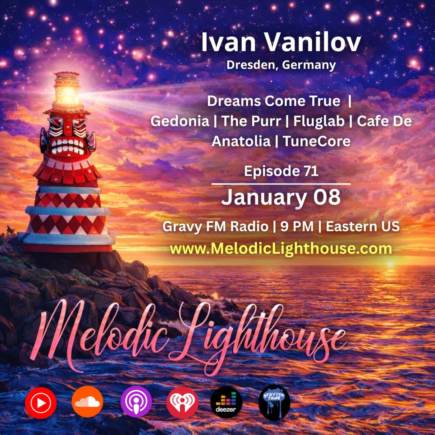 An all-new Melodic Lighthouse with guest Dj/Producer Ivan Vanilov from Dresden, Germany! Featuring some of his recent sounds including his recent remix of Tender Amber out now on Gedonia records!