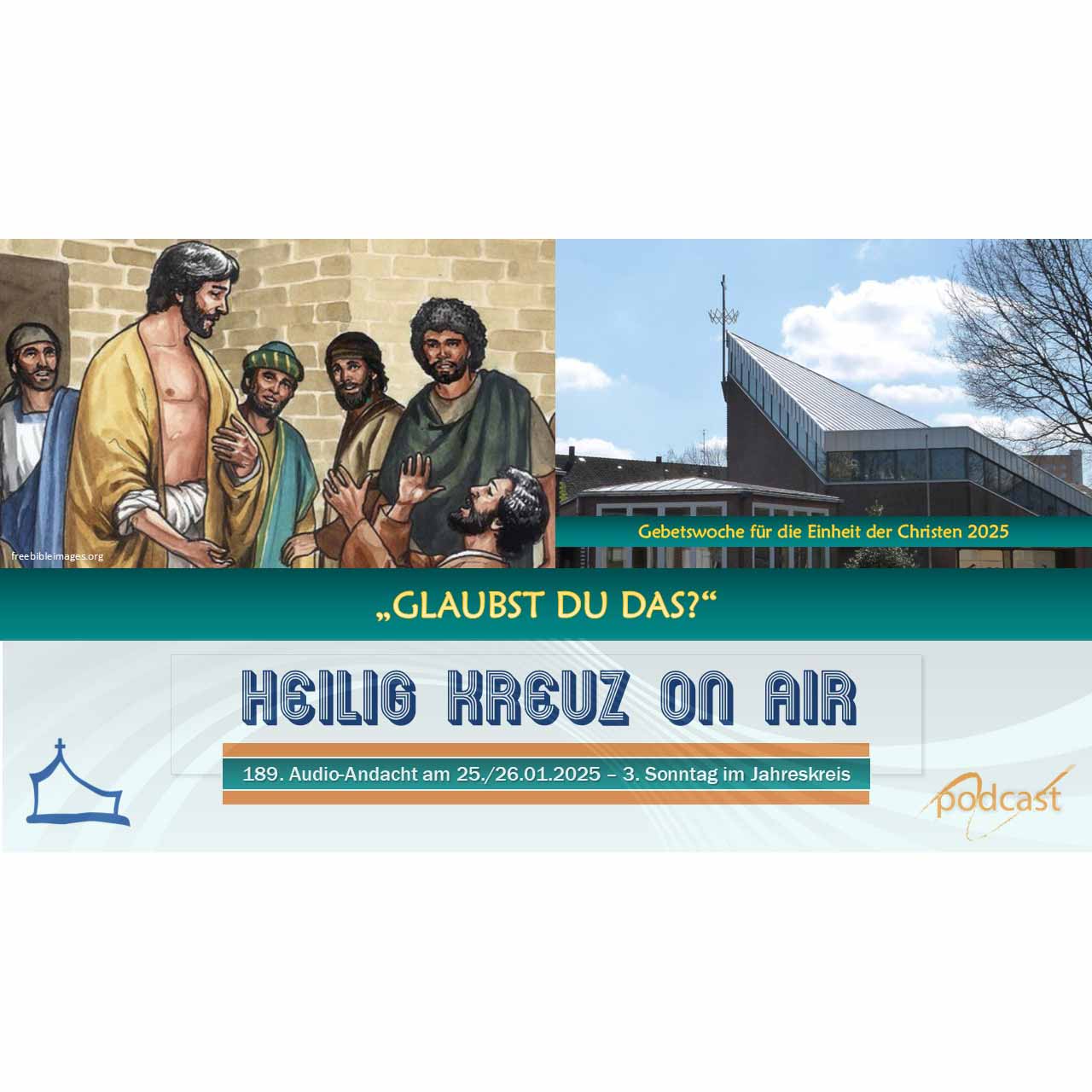 In dieser Woche endet die Gebetswoche für die Einheit der Christen. In diesen Tagen betonen wir zusammen mit den christlichen Kirchen der vielen evangelischen, orthodoxen oder katholischen Traditionen und Konfessionen das Verbindende und hoffen auf weitere Schritte auf dem Weg zur Einheit. „Glaubst Du das?“ ist das Motto der Gebetswoche – und auch wir haben mit diesem fragenden Motto unsere heutige Andacht überschrieben. Einige biblische Personen kommen in unseren Texten ebenfalls zur Frage „Glaubst Du das?“ zu Wort. Die Antworten darauf können uns ermutigen. Ermutigen, herauszugehen und die frohe Botschaft weiter zu tragen. Und nicht zuletzt freuen wir uns, dass Pastorin Bettina von Thun aus unserer evangelischen Nachbargemeinde Michaelis heute ihre Gedanken zur spannenden Frage über Zweifel und Glauben mit uns teilt. Unsere nächste Audioandacht ist am Samstag, 8. Februar um 17 Uhr online.
