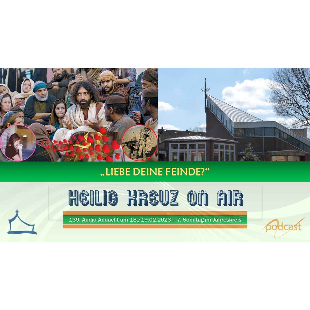 Krieg war den meisten von uns noch nie so nah wie heute. Heute, wo der Krieg der Russischen Förderation gegen die Ukraine nicht tausende von Kilometern entfernt ist. Das macht auch etwas mit uns, obwohl wir zum Glück nicht direkt betroffen sind. Doch auch wir spüren die Auswirkungen. Und auch ist so manche Selbstverständlichkeit in unserem Denken ins Wanken geraten. Wie sehen wir es heute, wenn Jesus im Evangelium, das wir gleich hören werden, sagt: „Liebt Eure Feinde?“. Dazu hat sich auch Pastoralreferent Heiner Ganser-Kerperin einige Gedanken gemacht, die er in dieser Andacht mit uns teilt. Die nächste Audioandacht im Heilig Kreuz Podcast ist am Samstag, 4. März ab 17 Uhr online.