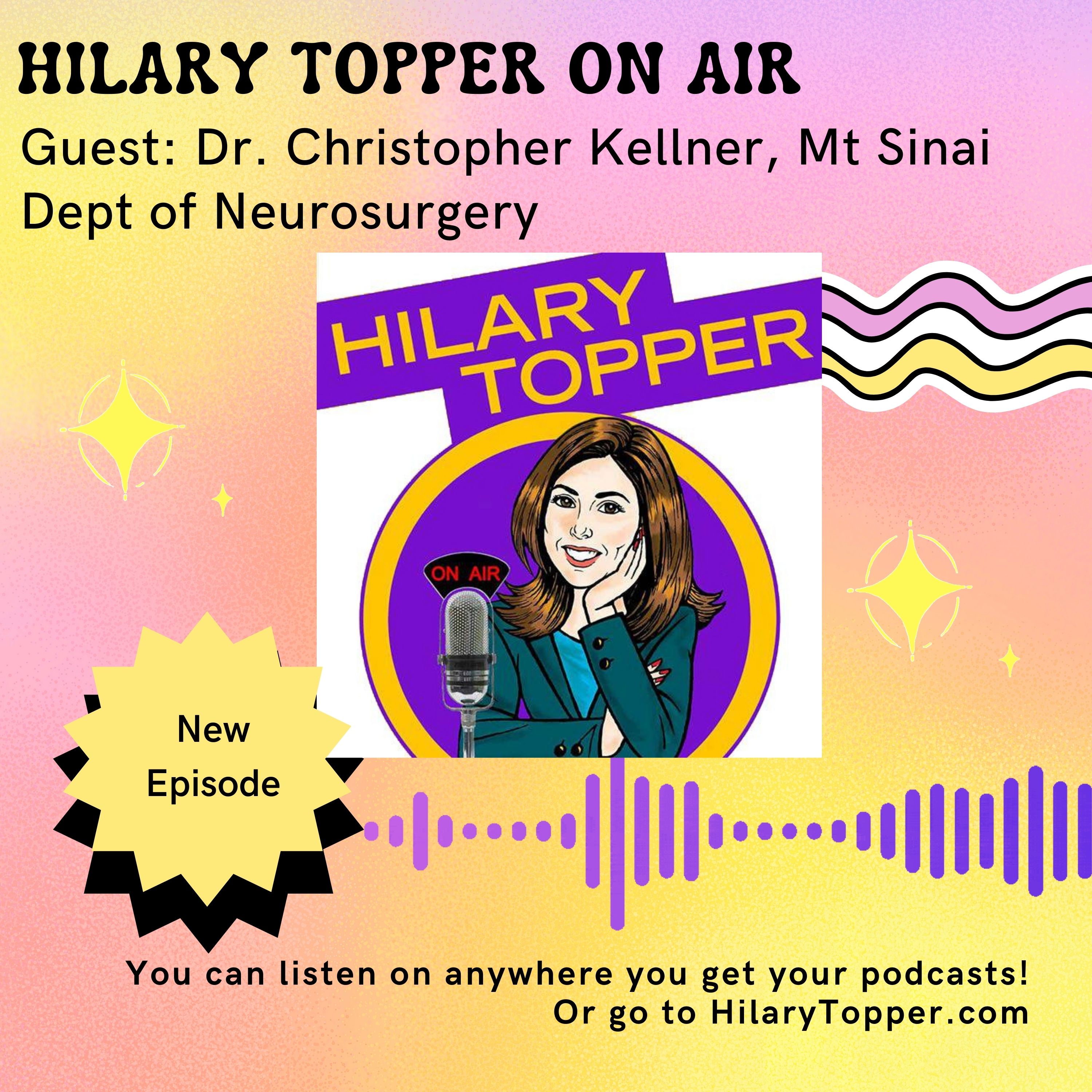 In this episode of Hilary Topper on Air, I interview Dr. Christopher Kellner, a fantastic neurosurgeon at Mount Sinai Health System Department of Neurosurgery. Full disclosure: Dr. Kellner was my neurosurgeon after discovering an unruptured aneurysm in the back of my head. And he did an amazing job. At my last angiogram, 95% of the aneurysm was gone. So I am truly grateful to him.