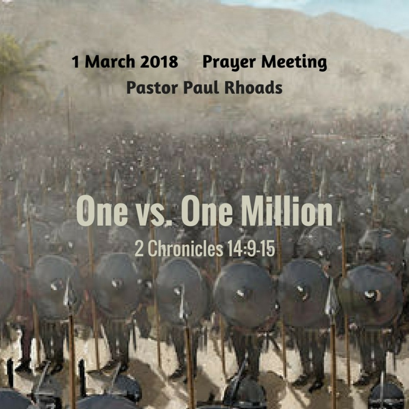 Wars in the Bible can serve as a metaphor for the problems and trials in our lives. Whether they are a spiritual attack or a proving of our faith, we need to respond with unwavering faith. In 2 Chronicles 14, Judah faced the Ethiopians, and they were outnumbered and under equipped. But King Asa called on the Lord. The perspective of his prayer, and what he asked, showed that he knew the Lord would provide victory. In this short study from Prayer Meeting, Pastor Rhoads explains that not only was the Lord's victory complete, but He also graciously rewarded their confidence in Him. He is ready to do the same in our lives.