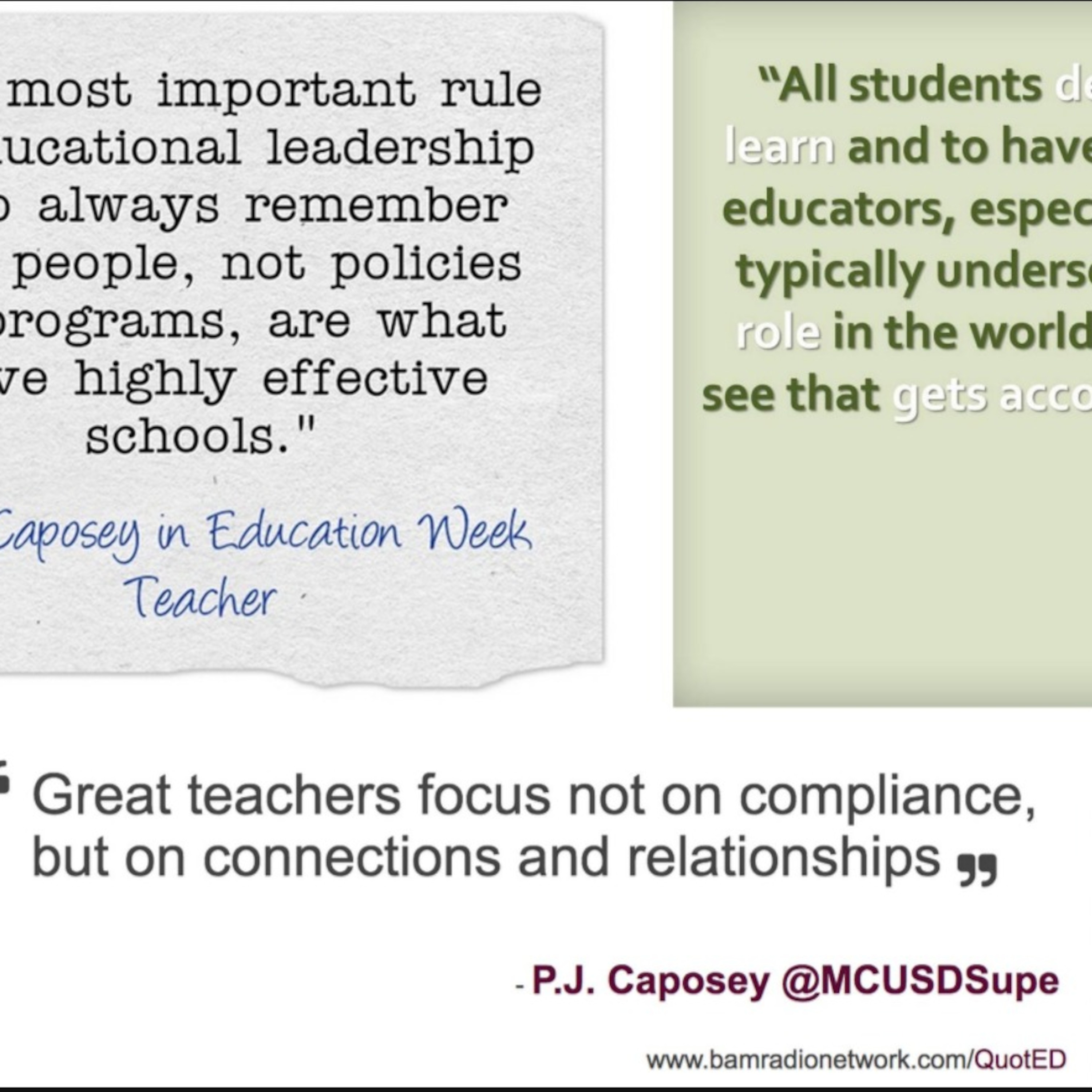 PJ Caposey was our guest and he talked about making evaluation meaningful. Evaluation is often seen as a scary thing or something that is a compliance check for teachers and administrators. PJ busts this myth within the conversation and provides immediate take-aways that you can apply tomorrow. Evaluations done right can build culture and enhance relationships in your setting. You will not want to miss this conversation!