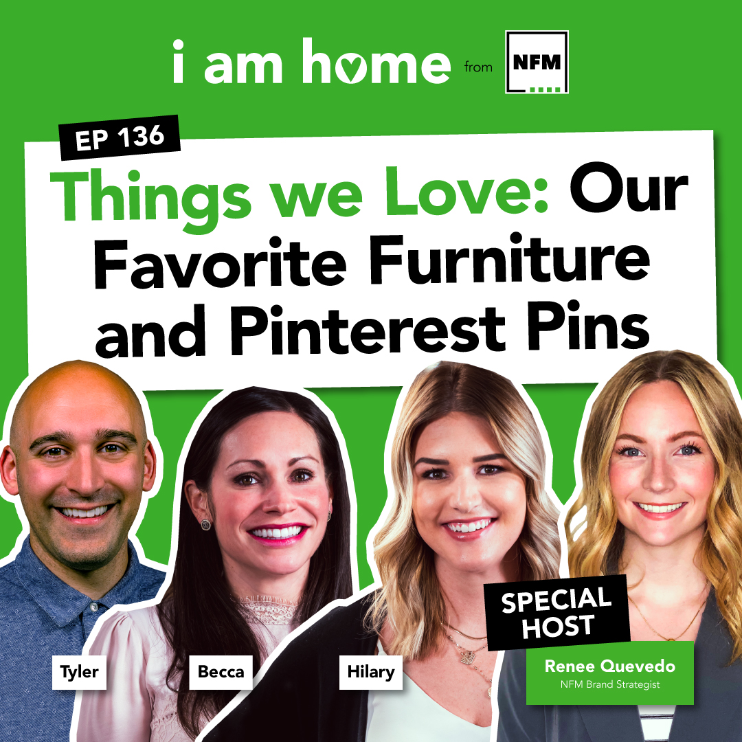 On today's episode of I AM HOME, our hosts Tyler, Renee, Becca and Hilary breakdown NFM's most popular pins on Pinterest. Whether it's form, function or style you're saving to your Pinterest board, you're sure to learn more about the latest trends. Join us for this fun and informative conversation where our hosts share their favorite finds and some helpful advice before you make a big furniture purchase.