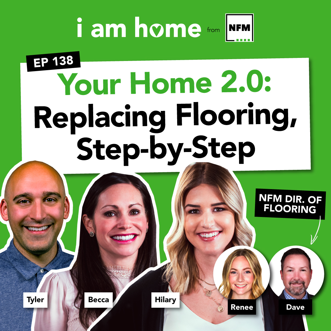 On today’s episode of I AM HOME, our hosts Tyler, Renee, Becca and Hilary are joined by Dave Chambers, NFM’s Director of Flooring. If you’re exploring the idea of updating and finding new flooring, this episode is for you! Refreshing your floors is a home improvement project, and with that in mind our hosts share the research you need to do ahead of time, as well as questions you need to ask professionals. Join us for this educational episode where you’ll learn about creating a budget, DIY vs professional install, maintaining your new floors and so much more!