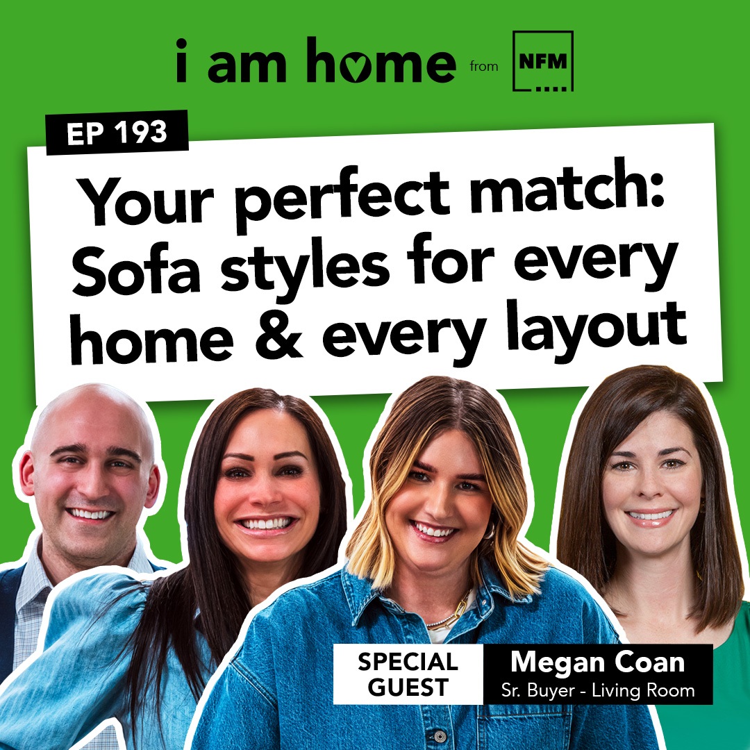On today’s episode of I AM HOME, our hosts Tyler and Becca are joined by NFMer Megan Coan. In this episode, we sit down with a seasoned sofa buyer to unravel the secrets of picking the perfect couch for your home. Whether you’re a parent looking for a family-friendly option, a pet owner needing durable fabrics, or a design enthusiast seeking the ideal centerpiece for your space, we’ve got you covered. From lifestyle considerations to design aesthetics, we’ll help you navigate the overwhelming world of sofa shopping so you can find a piece that’s as functional as it is stylish. Ready to level up your living room? Let’s dive in!