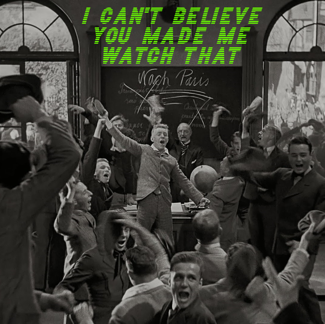 Fall in, you miserable bunch of maggots, it is my job to prepare your worthless carcasses for war! If you do what I say, when I say it, we just might turn your soft, dope-smoking body into a fighting machine that will be a credit to your family, your nation, and your almighty god! at the very least there will probably be less of you to scrape off the walls of your squadmate's foxhole where you were playing grab-ass and promising to meet each other's sweethearts when you got back home from all this horror! Well guess what, bean pole, you ain't going home, because we're watching the best picture of 1930, ALL QUIET ON THE WESTERN FRONT, and EVERYBODY DIES.