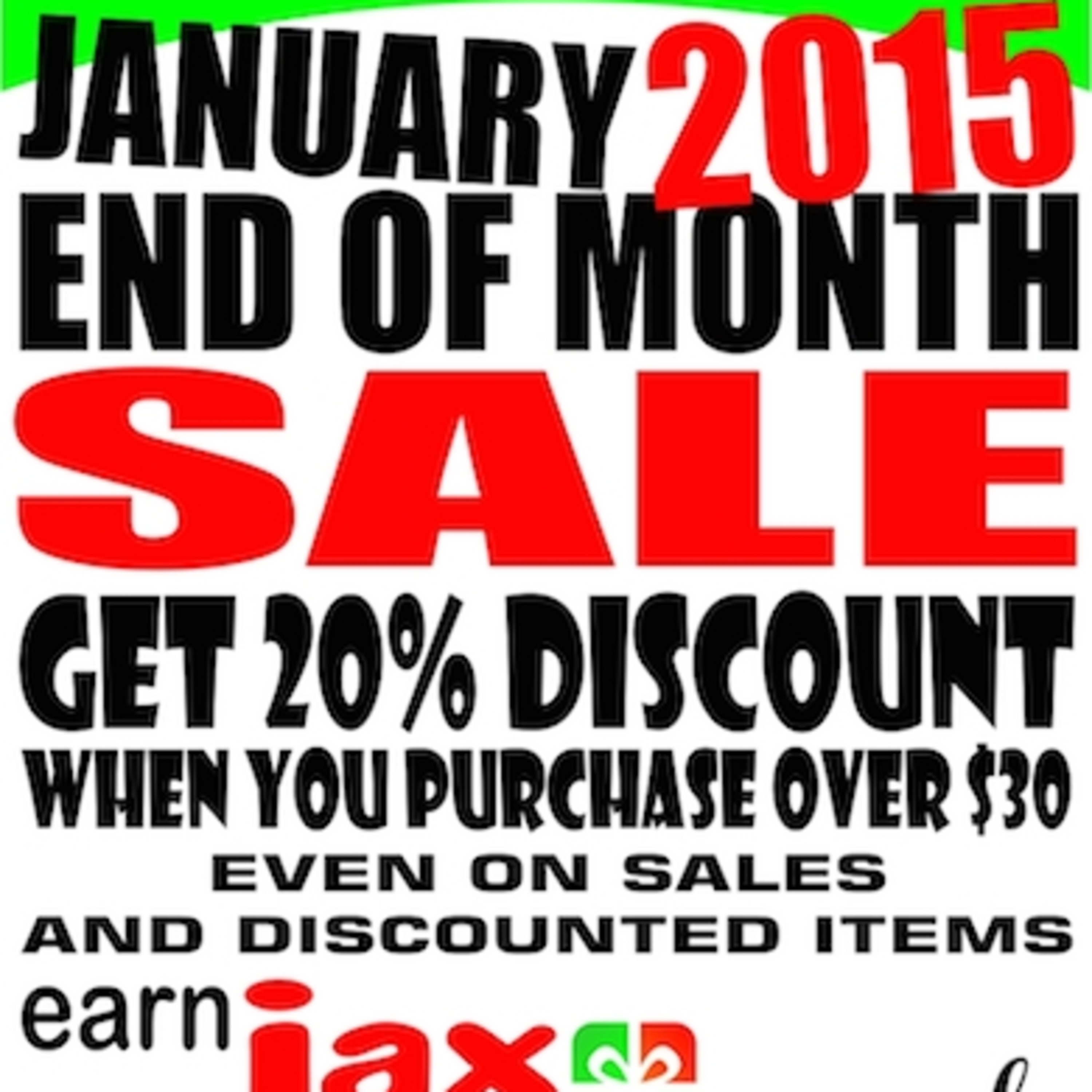 Come get it now! Don’t wait! We’re giving you an awesome 20% discount when you make purchases of $30 and over! That’s right! It’s JAX 20 off 30 End-of-Month Sale in January! And as a bonus, we’ve extended our sale to already discounted items too! So that 20% off 30 on almost everything storewide!