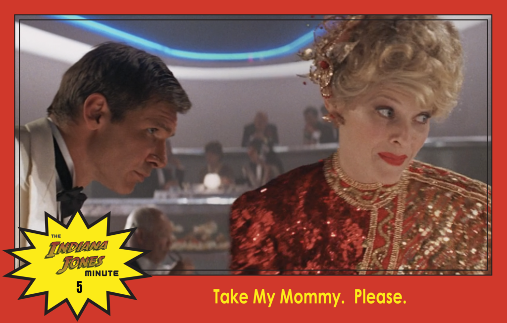 Indiana Jones, famous archeologist, meets Willie Scott, famous stand-up comedian, as he tries to get the diamond owed him by Lao Che.