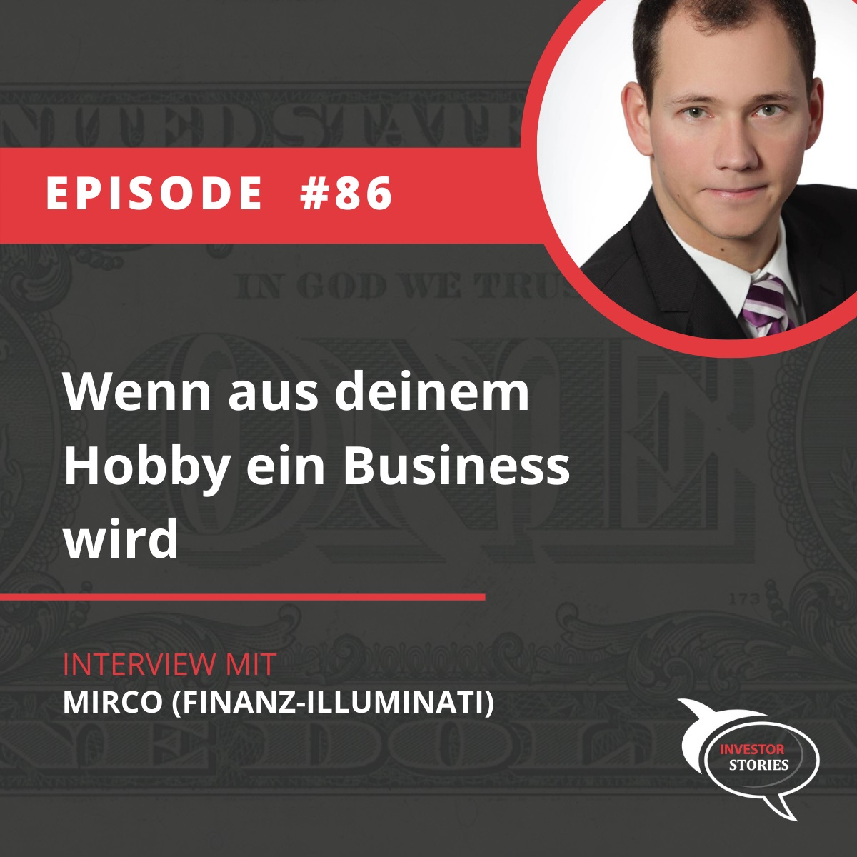 Mirco aka der Finanz-Illuminati hat persönlich großes Interesse an allen möglichen Bereichen rund um die Themen Finanzen, Investments und allem was damit zu tun hat. Seine gemachten Erfahrungen sowie seine Investments teilt er auf verschiedensten Kanälen mit seiner Community und hat aus seinem Hobby ein Business gemacht. Wie es dazu kam und in welchen Bereichen er investiert, erfährst du in dieser Folge des Investor Stories Podcast.