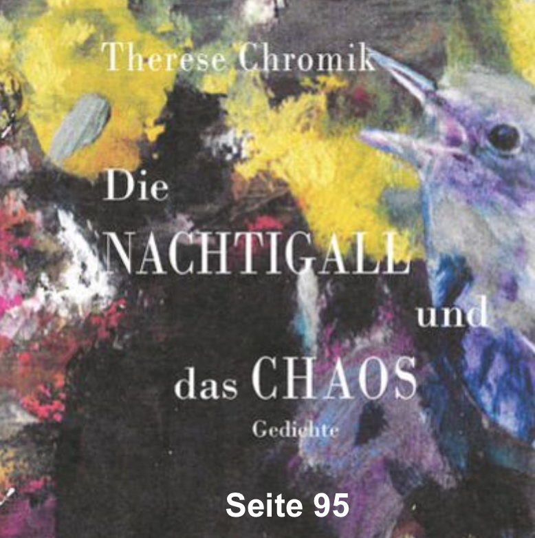Der neue Lyrikband von Therese Chromik "Die Nachtigall und Das Chaos", herausgegeben 2023 im Verlag Ralf Liebe. Sie hören dien Text auf der Seite 95, gelesen von Therese Chromik.