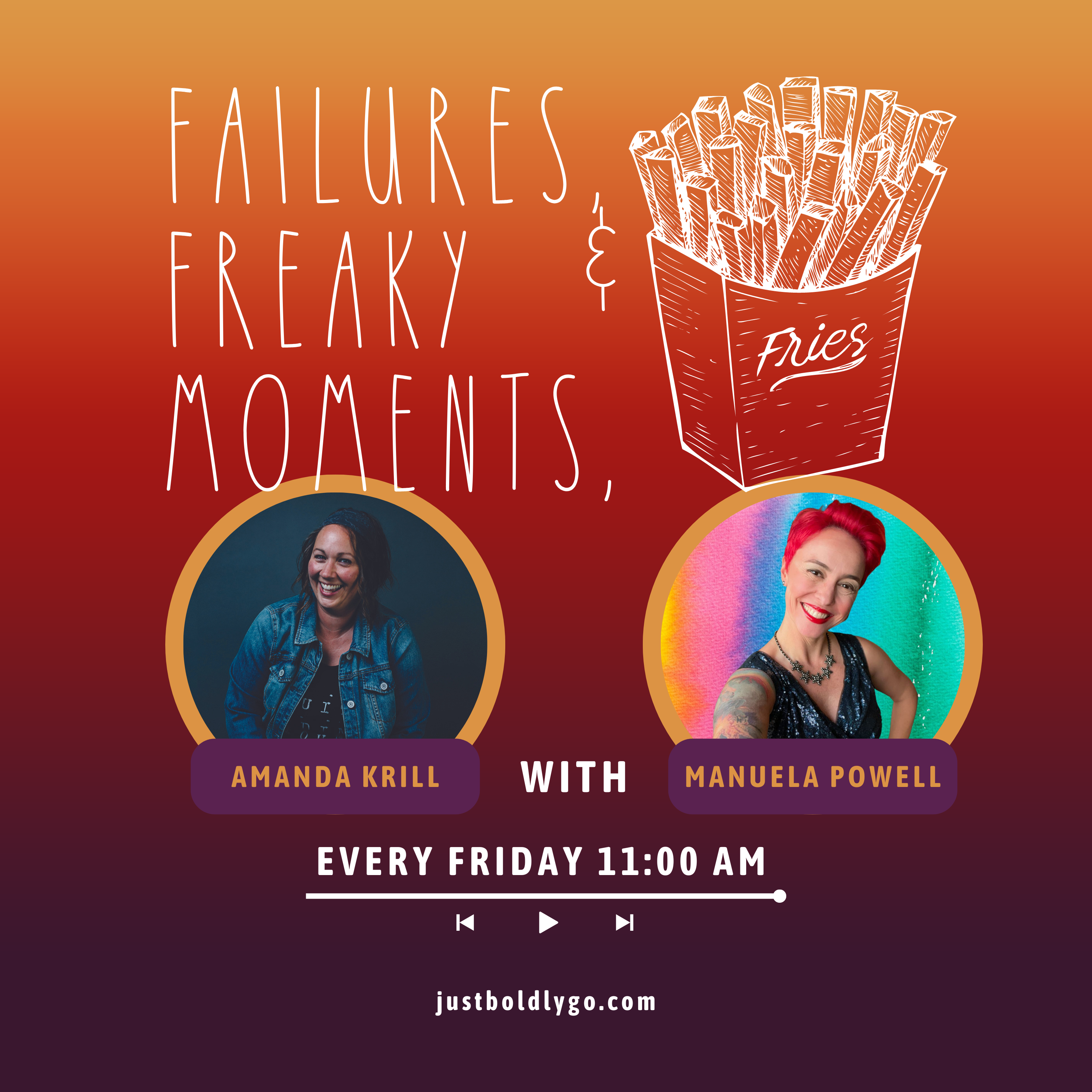 Failures, Freaky Moments & Fries is a fun series, that airs Fridays at 11am, wherein I ask folks roughly the same ten questions (I get bored, so I change things up sometimes...) and hilarity ensues.