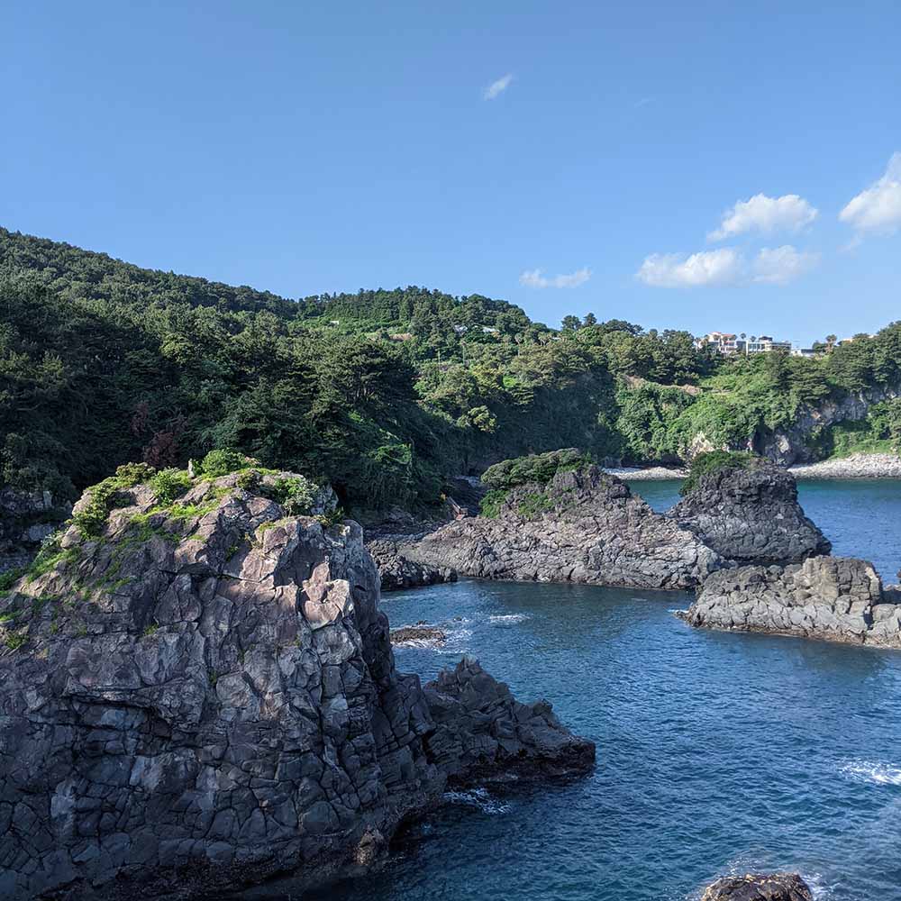 Areas discussed: Jeju, Seogwipo, Chilsimni Poetry Park, Hwanguji Coast, Hill of Storms, Oedolgae Sea Stack