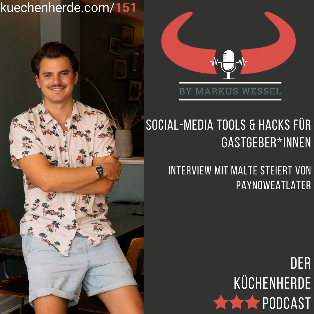 Aber wir haben in dieser Folge noch viel spannendere Themen zu bieten. Diese Folge ist nämlich in zwei Teile geteilt. Im ersten Teil geht es um die Gutschein Komplettlösung paynoweatlater, die zu Beginn der Pandemie ordentlich für Furore und Support gesorgt hat und im zweiten Teil um das Thema Social-Media. Wie gestalte ich mein Social-Media so, dass ich nur noch zwei oder drei Stunden in der Woche investieren muss. Unterstützt werde ich von meinem Interviewgast Malte Steiert von Foodguide und paynoweatlater. Malte und ich sprechen darüber wie sich das Gutscheingeschäft und natürlich die Plattform paynoweatlater seit Beginn der Pandemie bis heute entwickelt haben. Werden immer noch genauso viele Gutscheine verkauft und wie viele werden überhaupt eingelöst? Wir sprechen im zweiten Teil auch über clevere Tools die uns das Thema Social-Media wesentlich vereinfachen und Zeit sparen. Viel Spaß beim Hören.