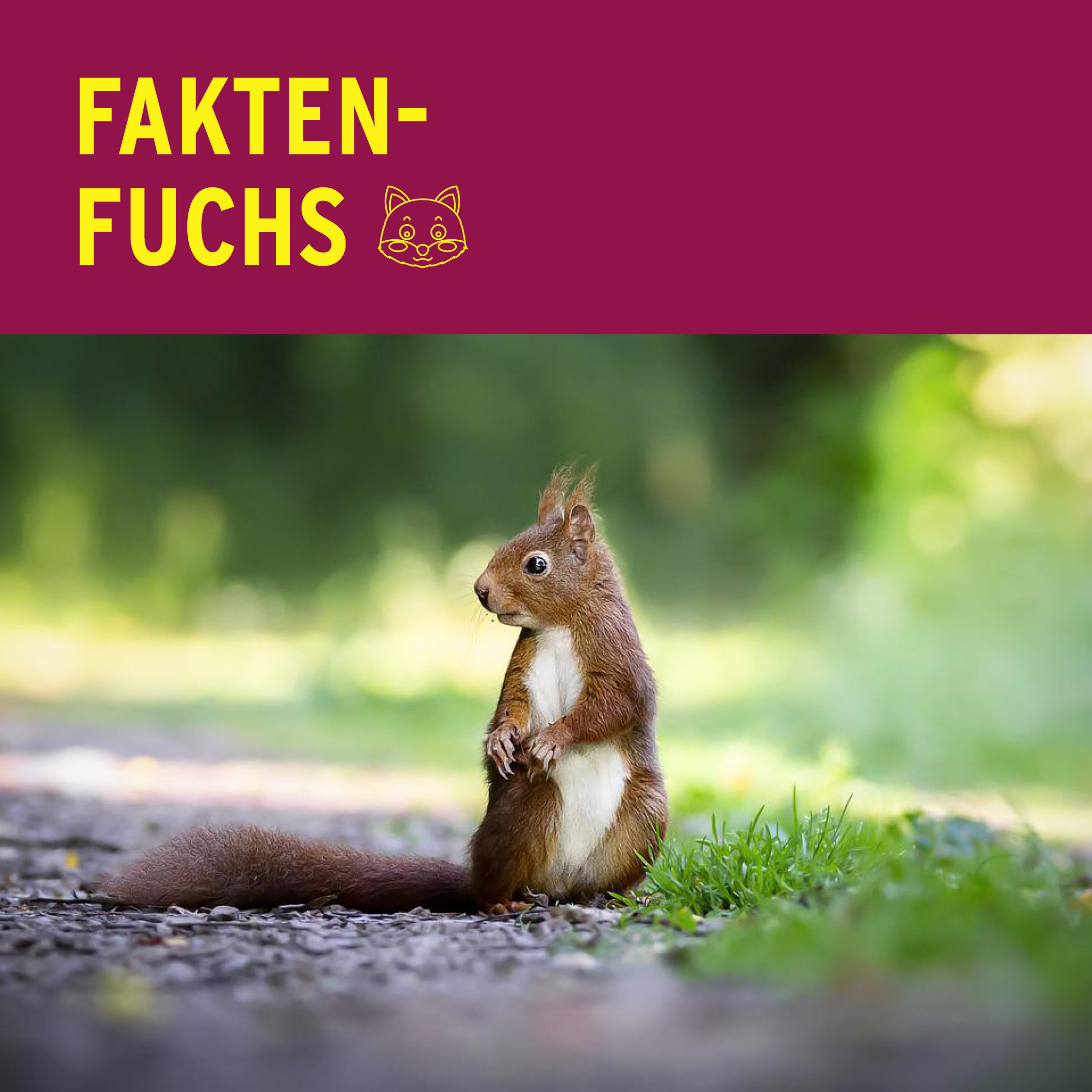 Vielleicht seht ihr sie manchmal durch die Bäume flitzen: Eichhörnchen. Bei manchen glänzt das Fell so rot, wie das eines anderen Waldbewohners. Und zwar der Fuchs. In diesem Beitrag gibt es beides. Unsere Faktenfüchsin Maia teilt spannende Fakten über Eichhörnchen mit euch.