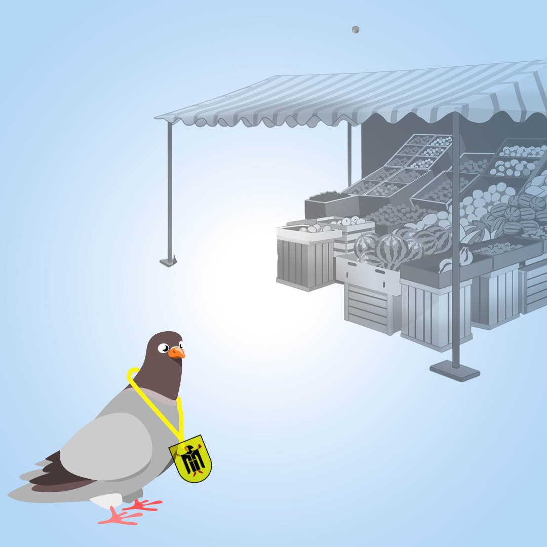 Trauben, Äpfel, Tomaten - alle diese Leckereien hat Luftreporterin Mali auf dem Viktualienmarkt entdeckt. In der Kurzwelle hat die Taube Mali Moderator Björn und Henning Rader vom Münchner Stadtmuseum von ihrem Rundflug über den Viktualienmarkt erzählt.