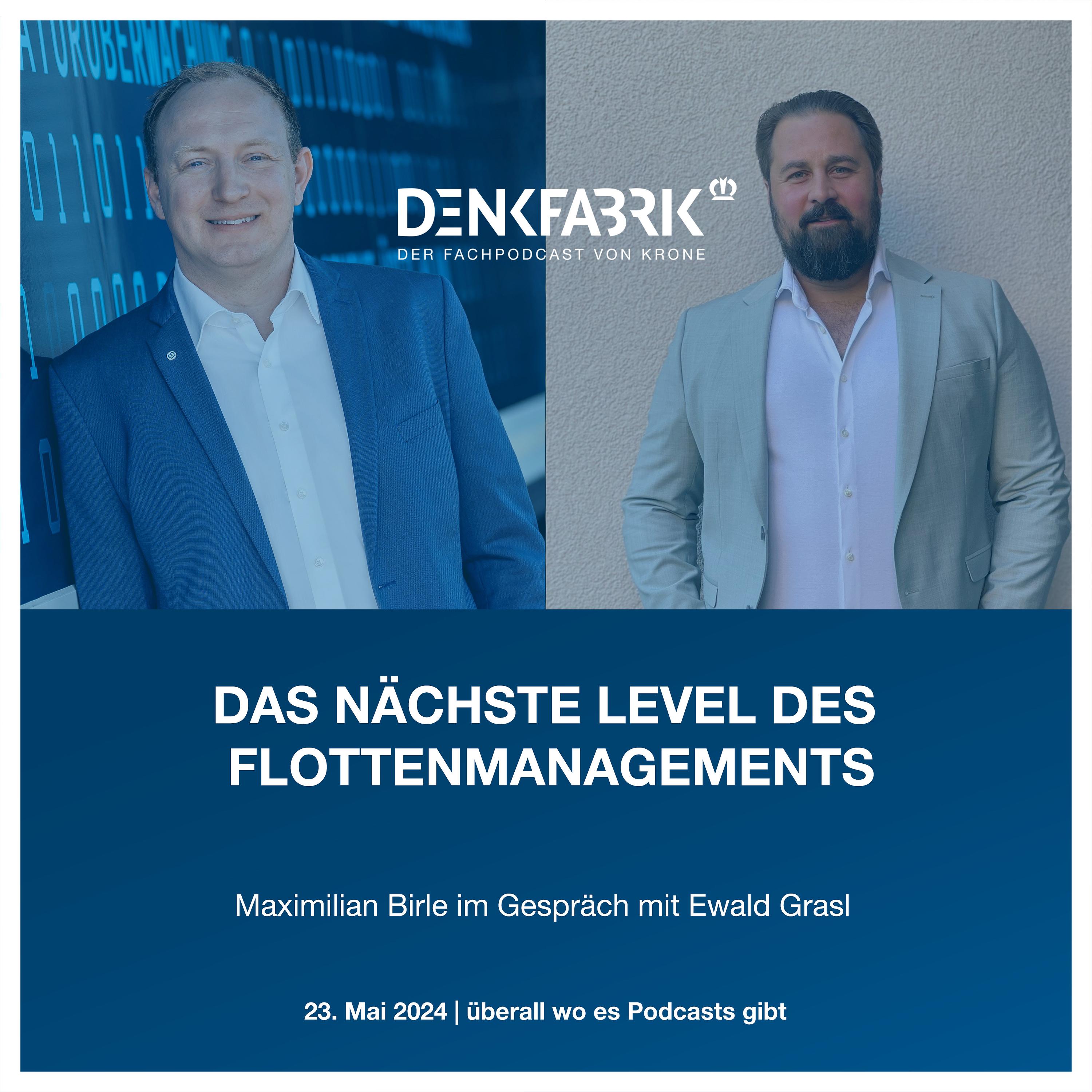 In der neuesten Folge des DENKFABRIK-Podcasts spricht Maximilian Birle (Head of Telematics & Digital Services, Fahrzeugwerk Bernard Krone GmbH & Co. KG) mit:
