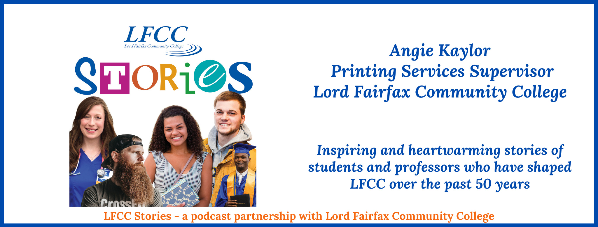 Angie explained how concerns with growth within the printing industry led her to pursue a degree in accounting at LFCC many years after graduating high school. We talked about her class experience and how the college has given her many educational opportunities AND a job as printing services supervisor.