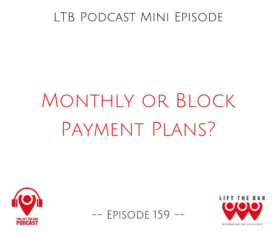 In this short episode, Stuart covers whether or not you should use monthly or block payment plans. How to transition across to monthly and how to work out what to charge so that you get paid holidays is also covered.