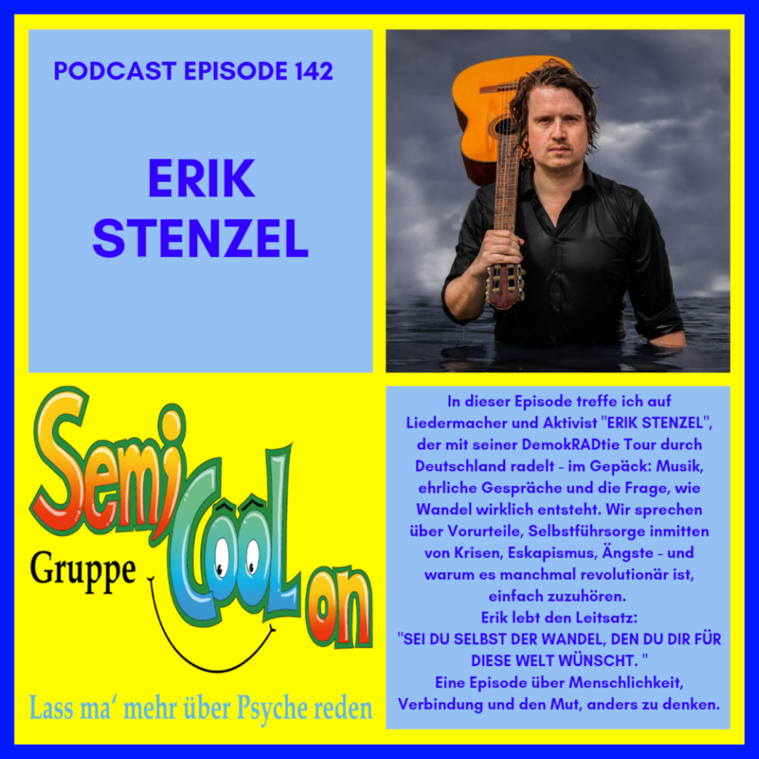 In dieser Folge spreche ich mit Erik Stenzel, Liedermacher und Aktivist, der mit seiner demokRADtie Tour 2025 quer durch Deutschland unterwegs ist – auf zwei Rädern, mit offenen Ohren und großem Herzen.