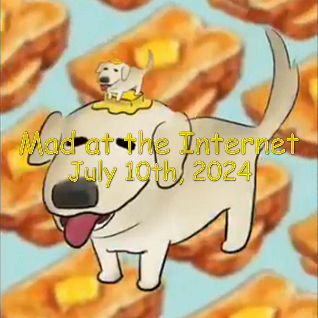 Butterdog is the dog with the butter on him, journalists suffer (funny+cool), Whataburger triumphs over Red Lobster, what happens when you go into the women's restroom, F1nn5ter's top donor, Sketch's moonlighting, the Greer suit update, whatever a "fighting stick" is, take me out to the ballgame, Pizza Jews win.
