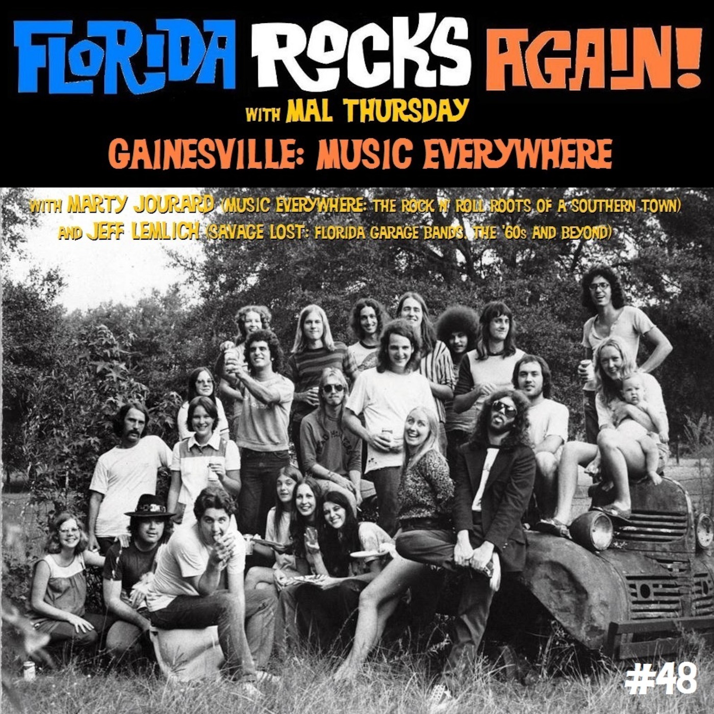 Mal returns to Florida for a very special episode, "Gainesville: Music Everywhere," featuring Gator Town sounds spun by guest DJs Marty Jourard.author of "Music Everywhere: The Rock n' Roll Roots of a Southern Town" and longtime keyboard and sax man with The Motels, and Florida Rocks Again! co-producer Jeff Lemlich, author of "Savage Lost: Florida Garage Bands, The '60s and Beyond." Presented in Ultrasonic Stereophonic and Living Monophonic Sound.
