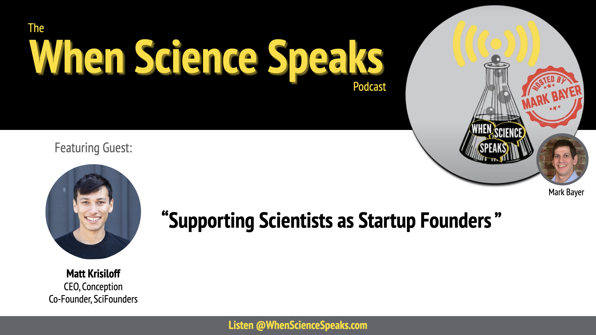 In this week's episode, Matt Krisiloff, CEO of Conception, a company working to turn pluripotent stem cells into viable human eggs, talks about SciFounders, which he started with partners Lucas Harrington and Alexander Schubert to help technical founders launch companies. Topics discussed include: