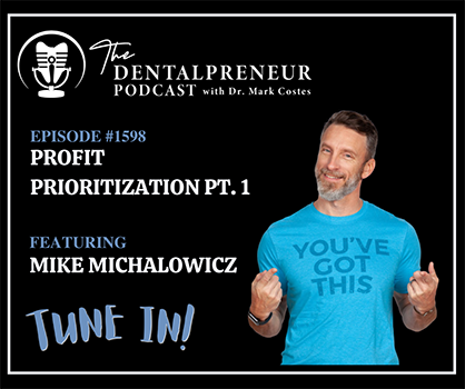 On today's episode, special guest Mike Michalowicz of multiple bestselling books, talks through how to put profit first. "Transform your business from a chas-eating monster to a money-making machine". Out with the old; in with the new! Profit should never be last, just like you wouldn't put something of value, like family, last on your list. When you make sales in your practice, subtract the profit and you're left with your expenses (what you can work with). Easy enough, right? Switch up the formulas and you're putting profits further up on the totem pole.
