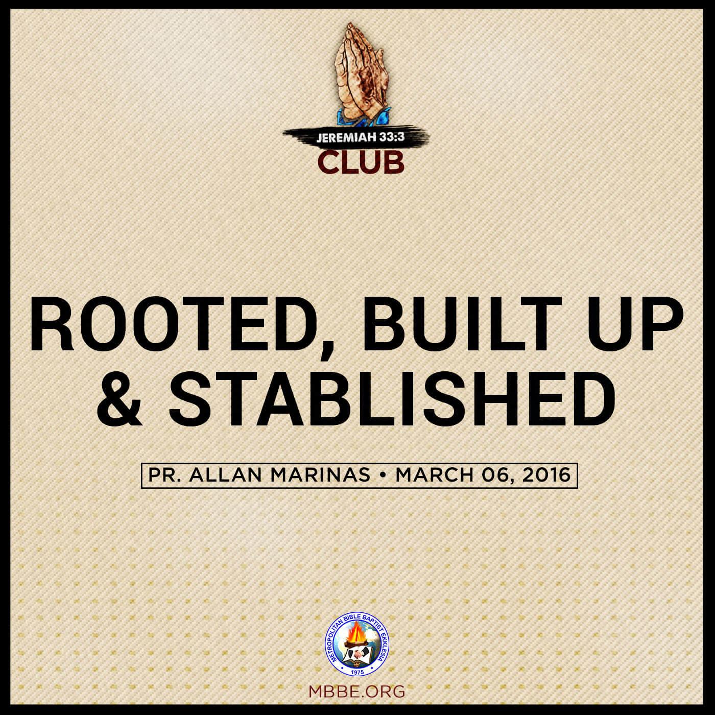 Preached by Pr. Allan Marinas on March 01, 2016 during the Jeremiah 33:3 Club Prayer Meeting Service of the Metropolitan Bible Baptist Ekklesia. Visit https://go.mbbe.org/2PmQwA1 to watch the video version of this message.