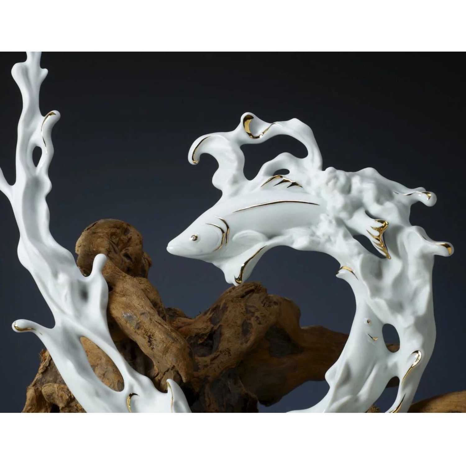 Traceability and return that is the sense of life instinct. In this work, we catch the great mission of salmon that is not afraid of hardships and dangers, and must go upstream. We create the moment that dynamic of the stormy sea. This is a very three-dimensional and realistic work, full of tension.