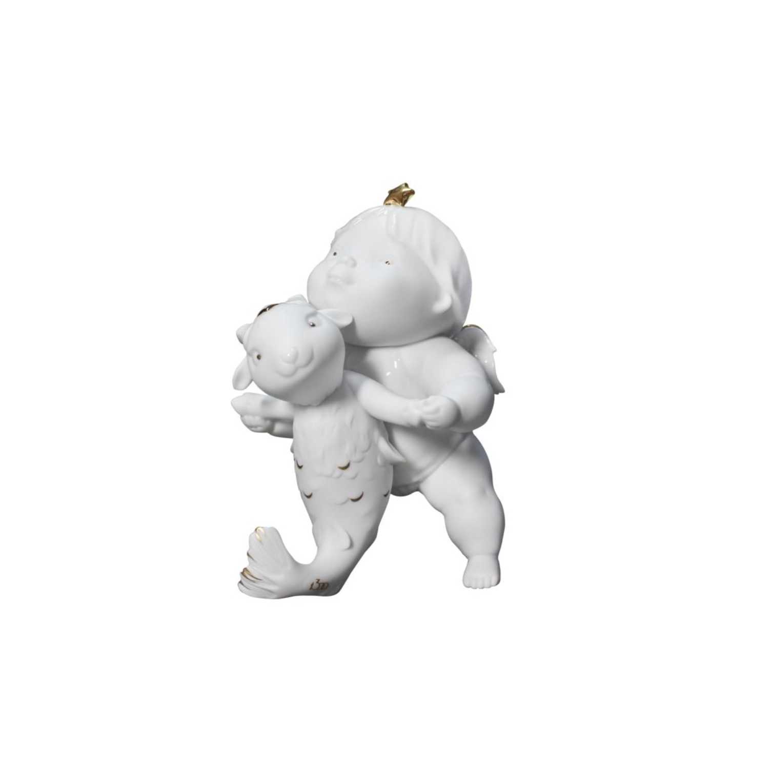 In the work "Capricorn" of "1300 Fine Porcelain", the chubby little angel baby, holding the goatfish in both hands from behind, seems to be dancing waltz, innocent and cute, very cute
